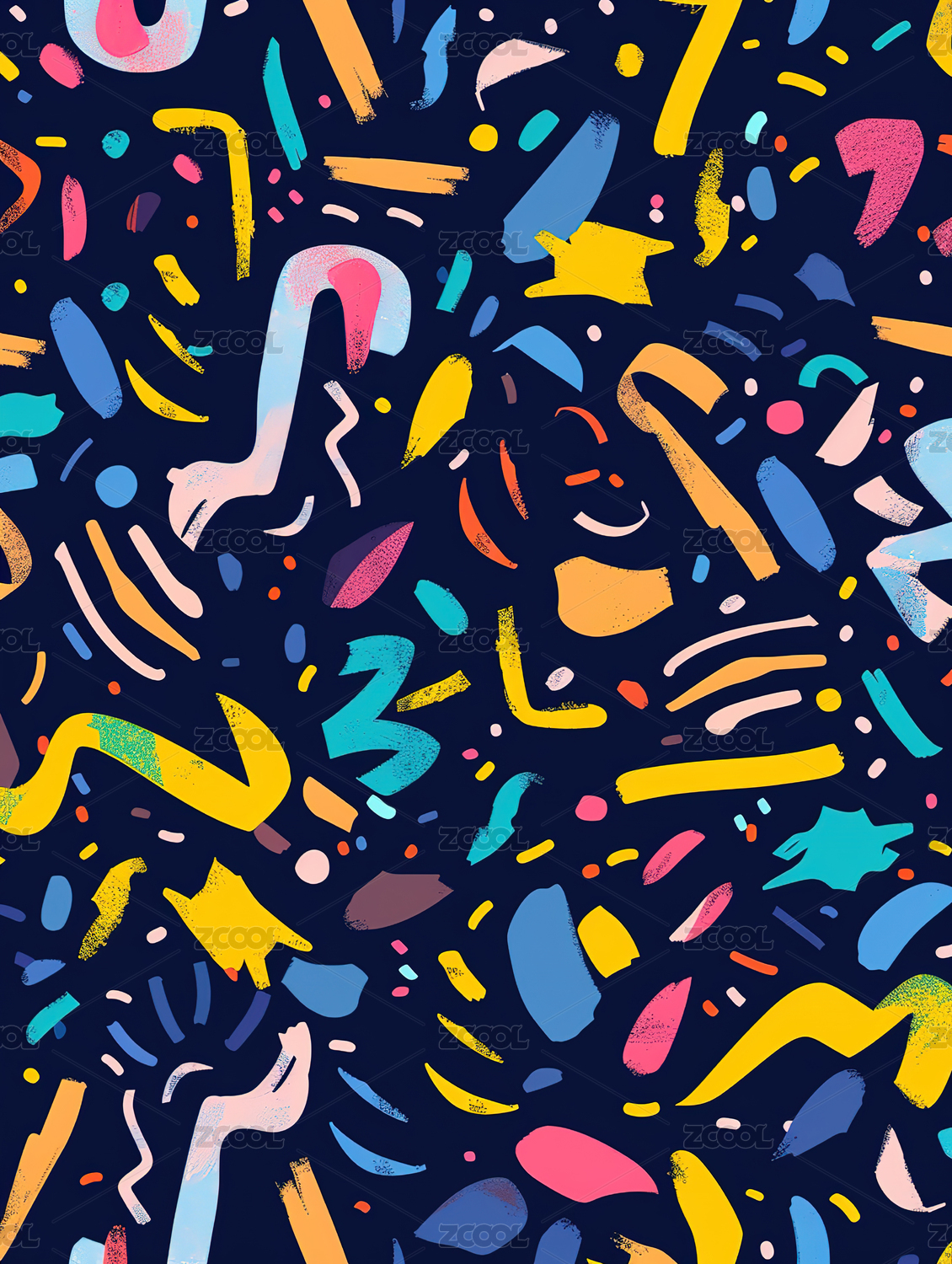 抽象图案,多彩图形,几何形状,黑色背景,彩色曲线,装饰元素
