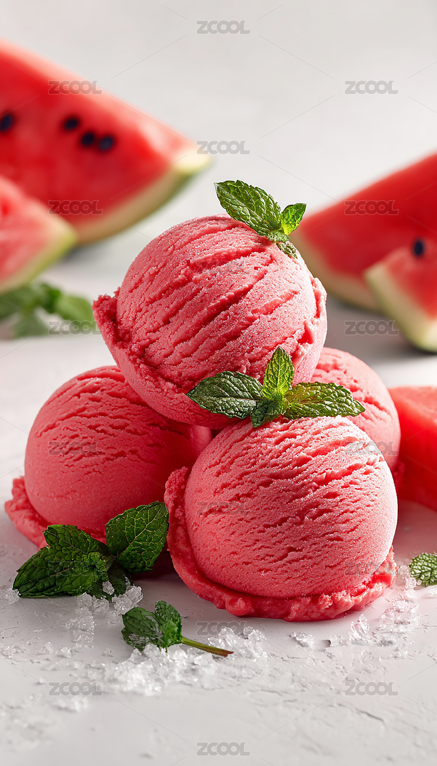 西瓜,冰淇淋,甜点,薄荷,水果,红色,冷饮,美食
