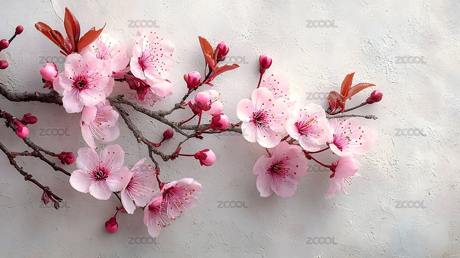 白底樱花簇静物图