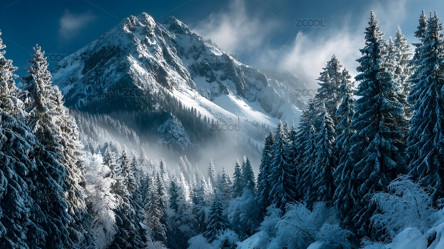 自然,白色,蓝色,云,雾,阳光,山脉,森林,树木,风景