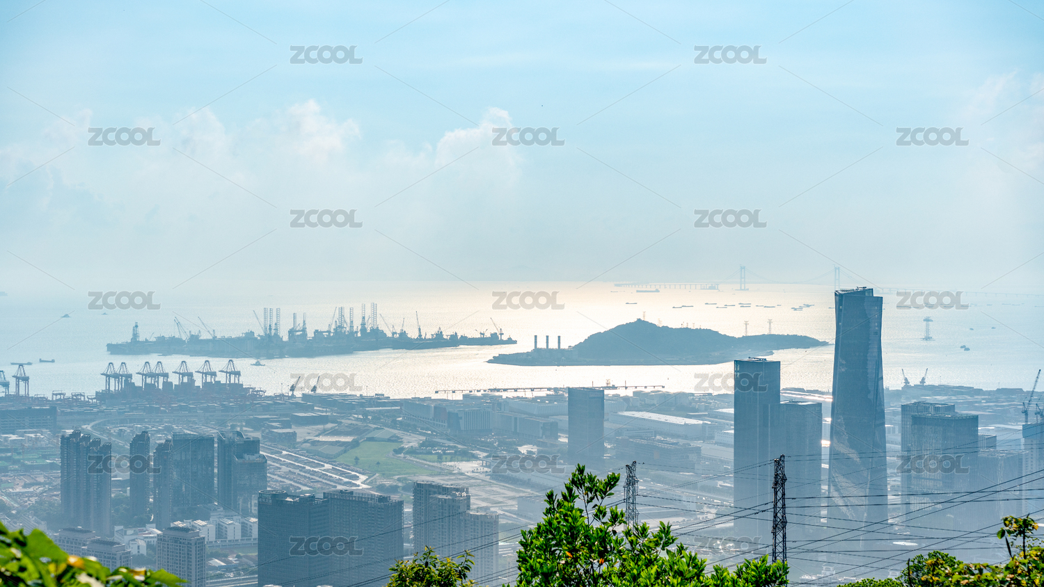 中国深圳南山公园俯瞰蛇口城市建筑群