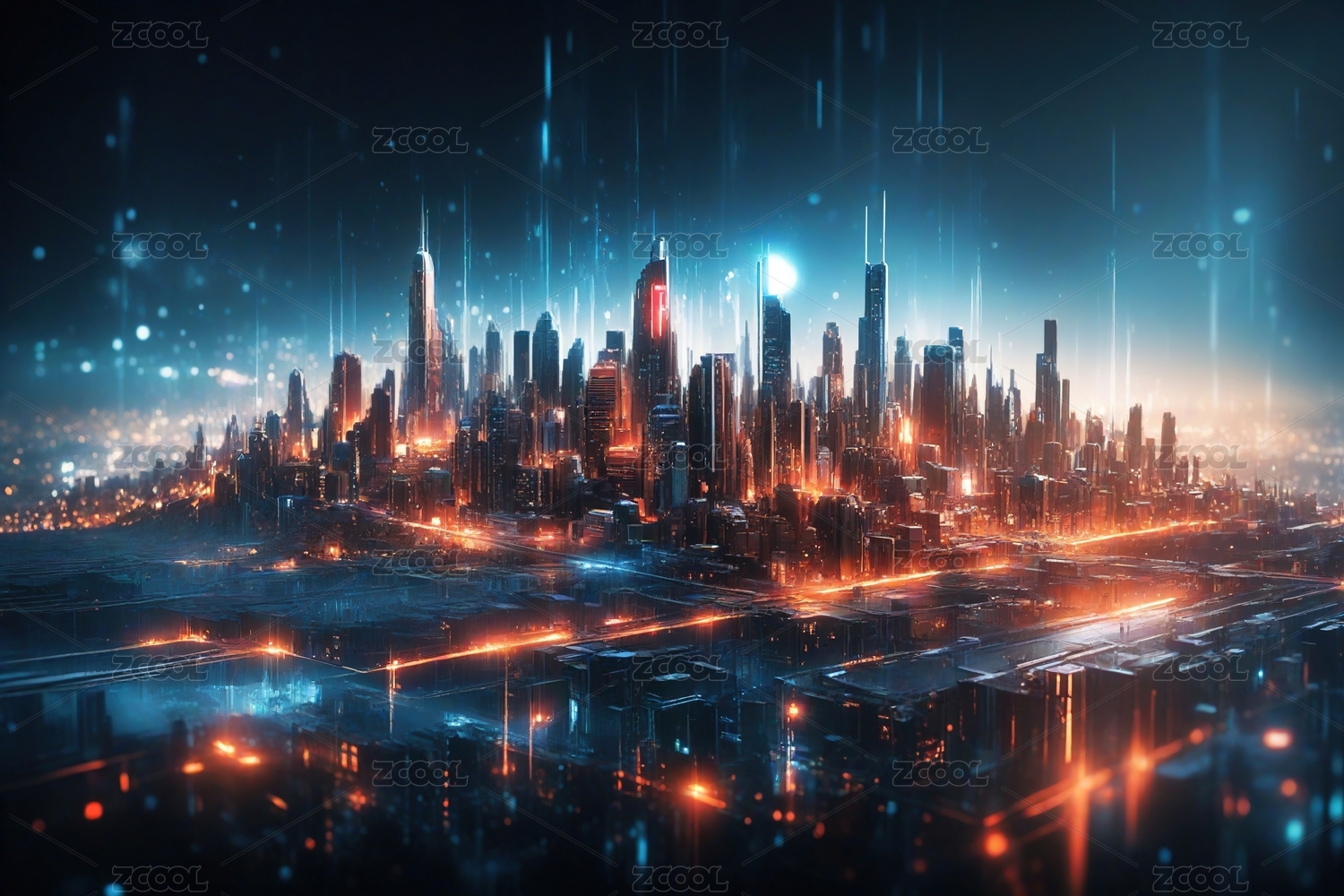 未来城市夜景与数据流