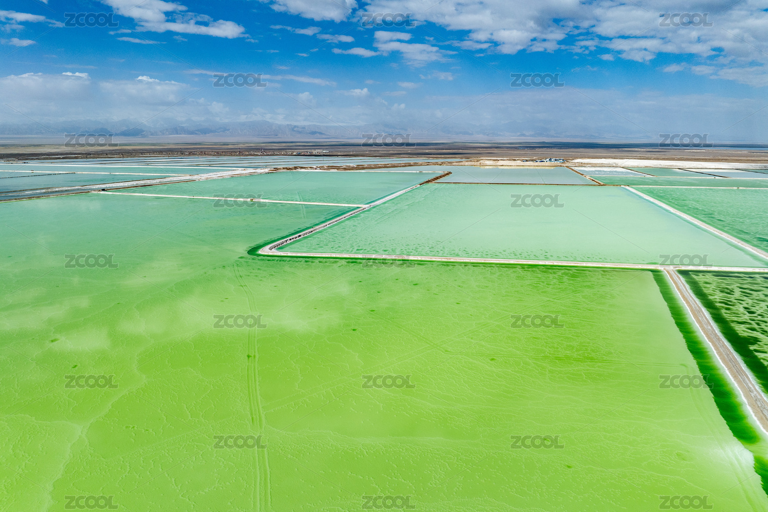 青海海西芒崖翡翠湖盐湖风光绿色工业盐湖泊