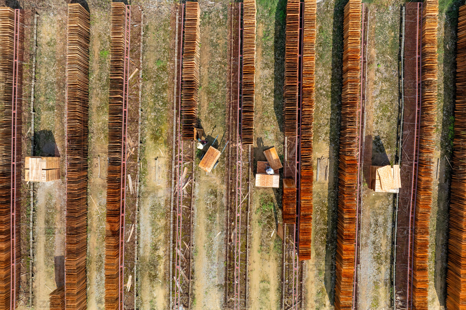人造板合成版胶合板木材加工厂露天晾晒木材