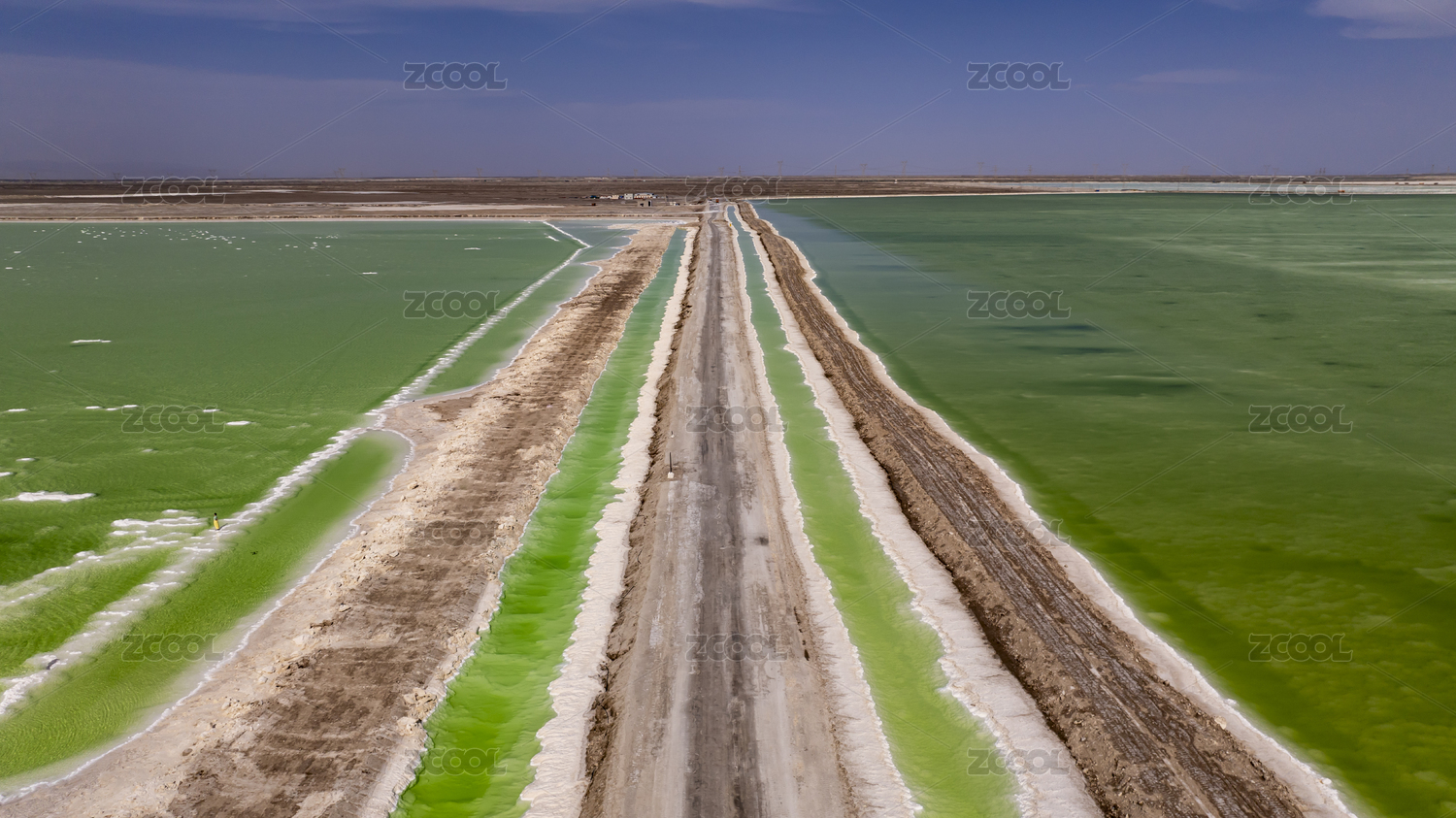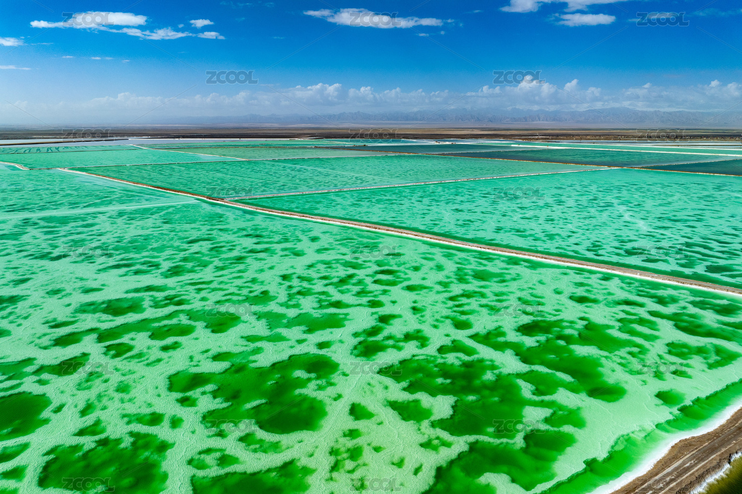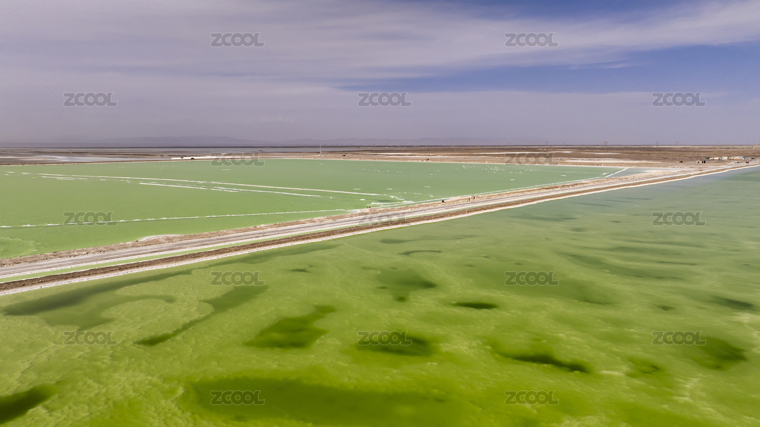 青海海西芒崖翡翠湖盐湖风光绿色工业盐湖泊