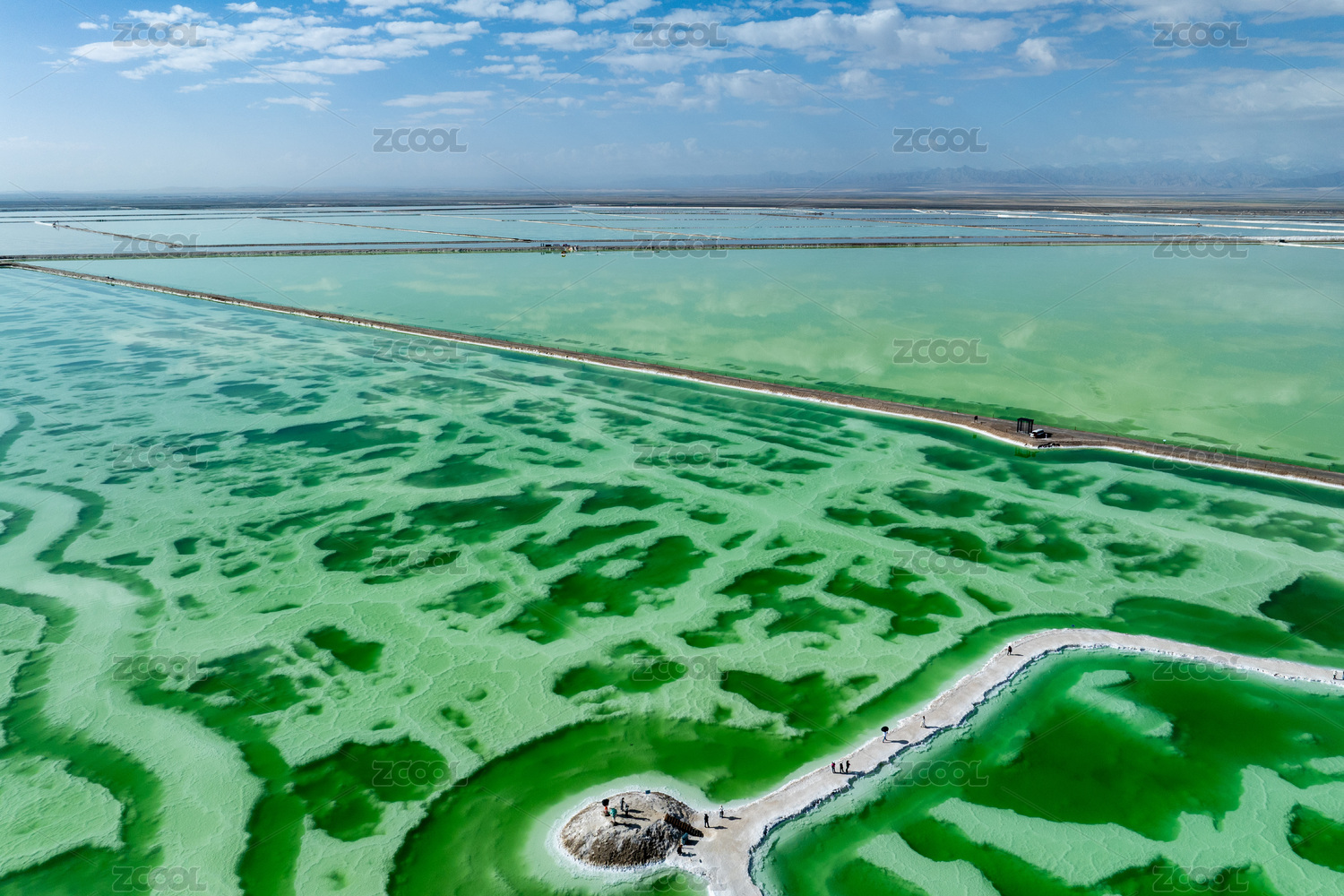 中国青海格尔木察尔汗盐湖翡翠盐湖航拍风光