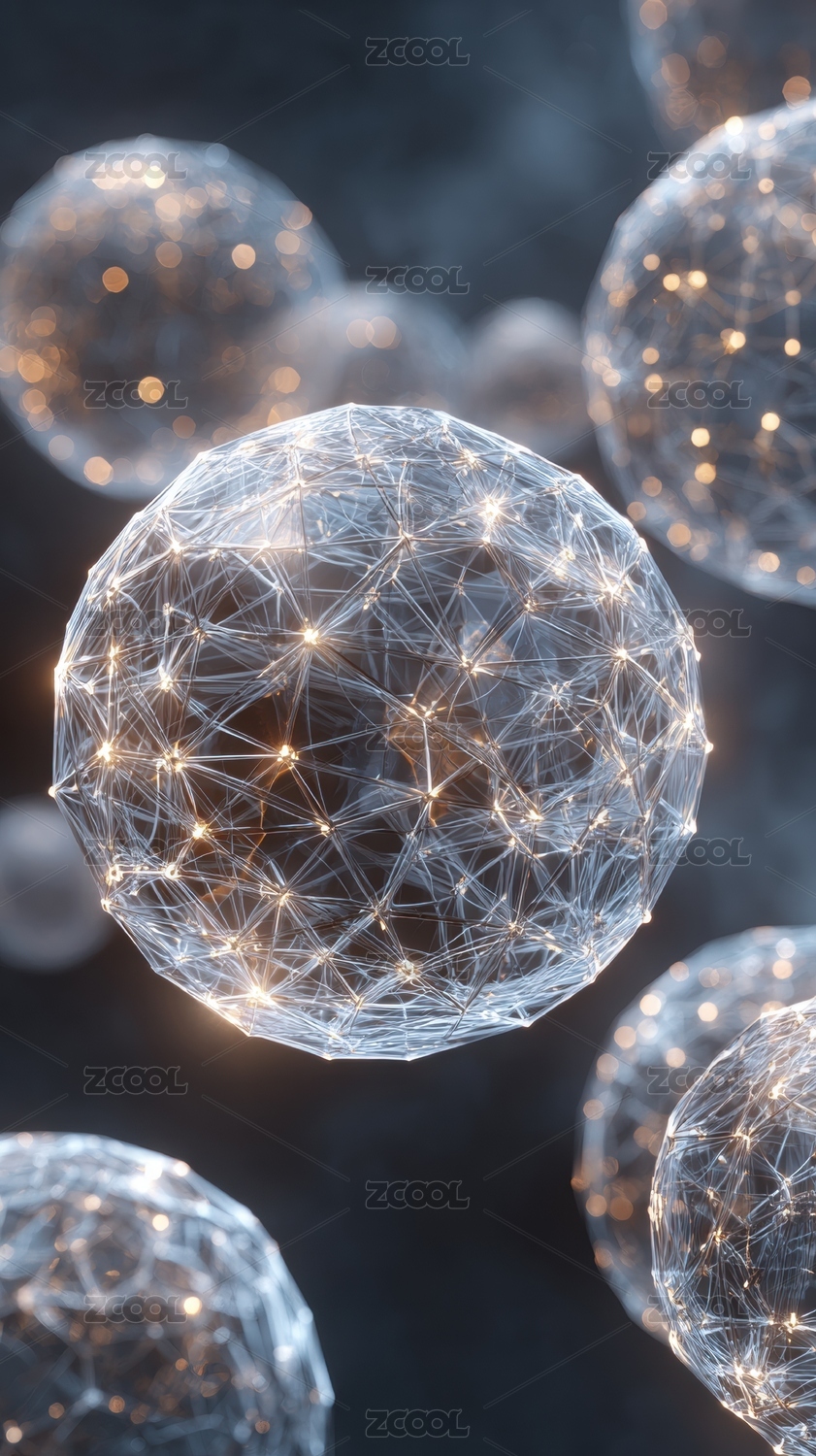 透明,背景,现代,球体,悬浮,立体,设计,多面体,网络,结构