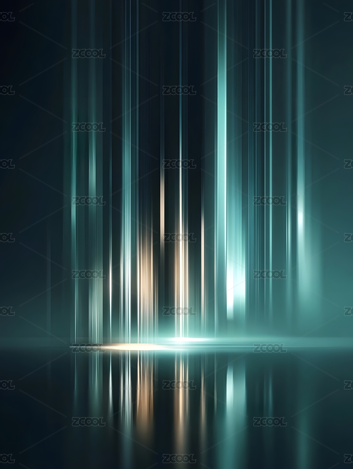 黑背景下的渐变光束与反射光