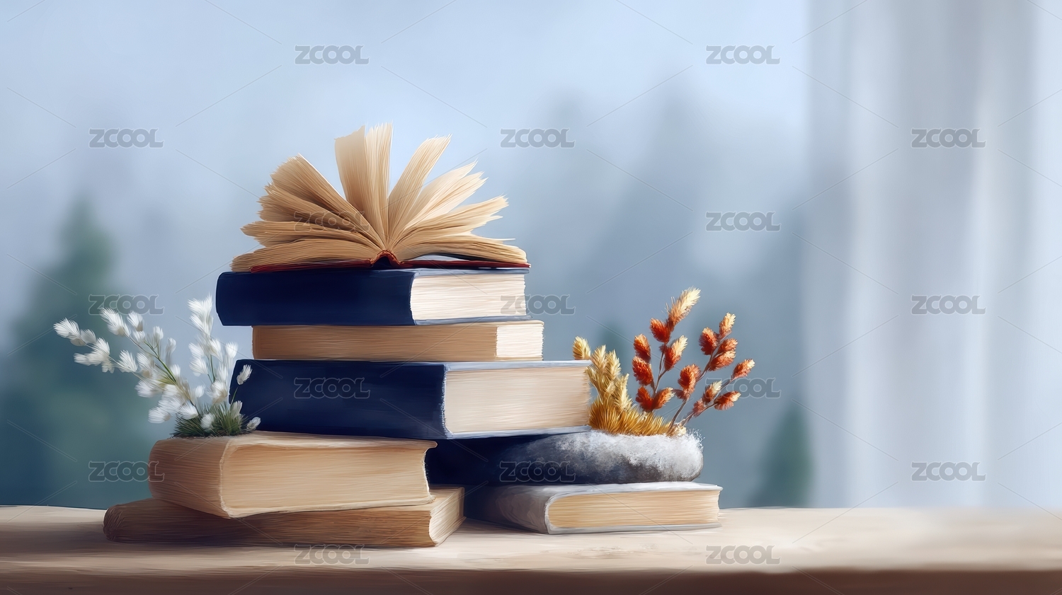 室内,自然,木桌,宁静,书籍,松果,窗台,阅读,开放,的书