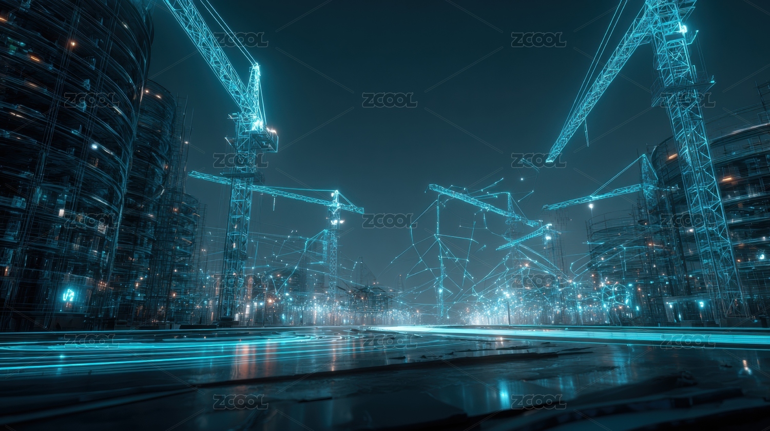 水面,反射,蓝色,环境,未来,城市,夜景,建筑,工地,灯光