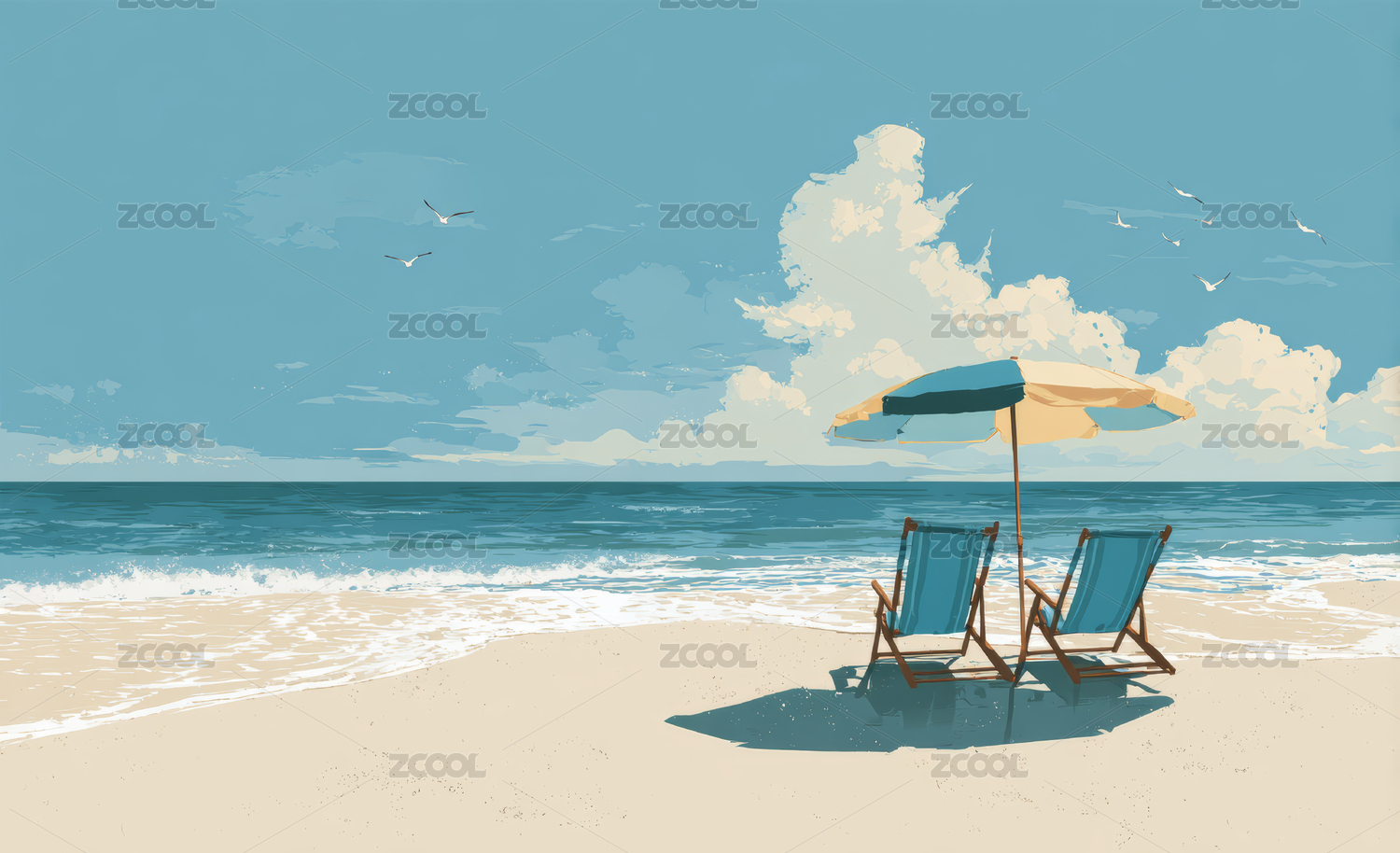 夏日清凉沙滩插画壁纸