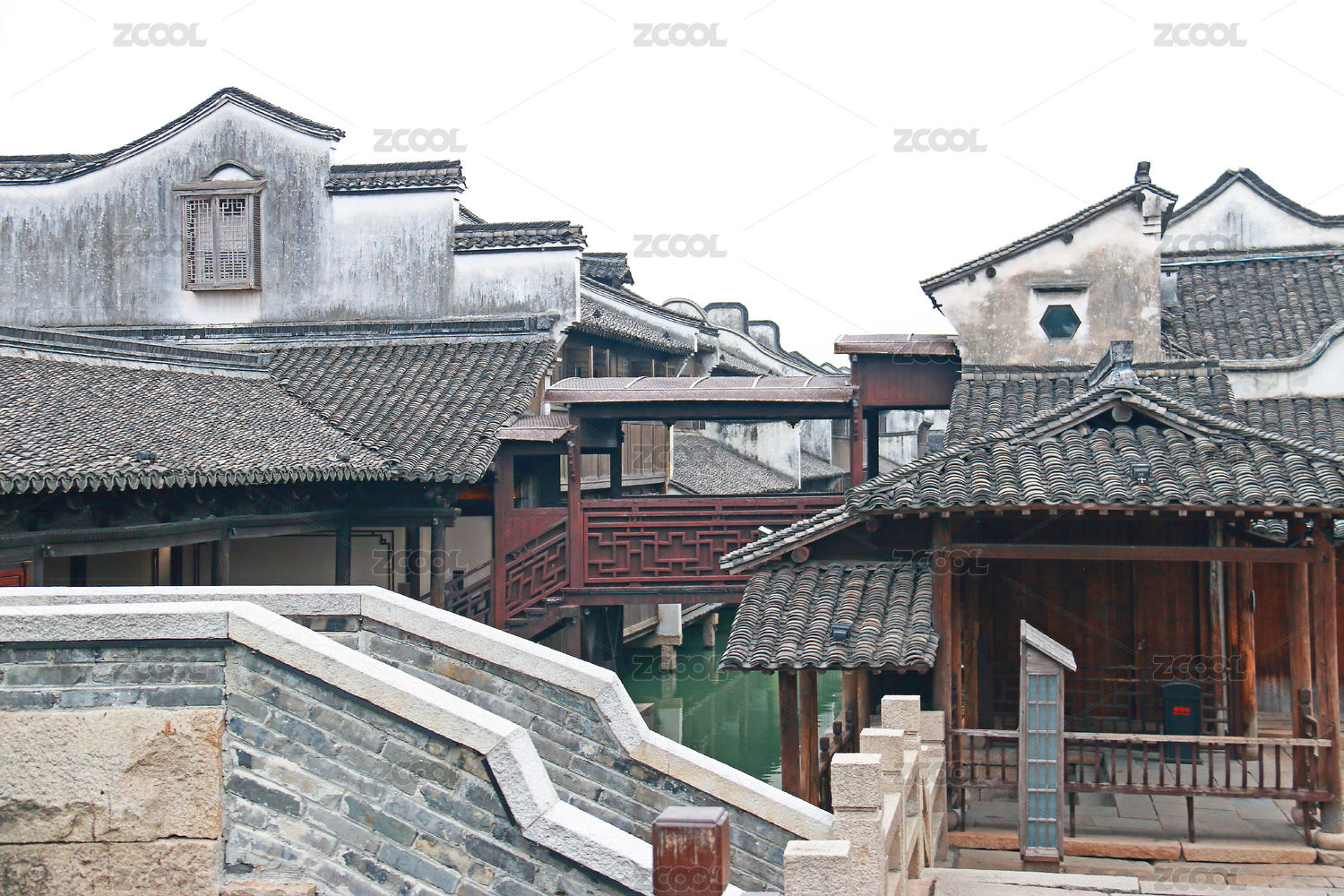 江南粉墙黛瓦砖砌古建筑群生态风光
