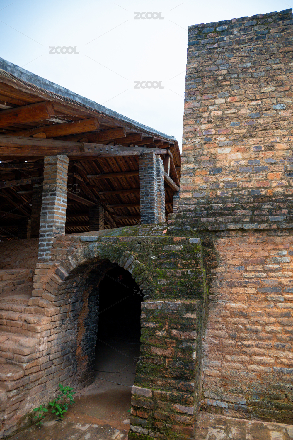 砖墙,青瓦,屋顶,拱门,庭院,绿植,传统,建筑,文化,历史
