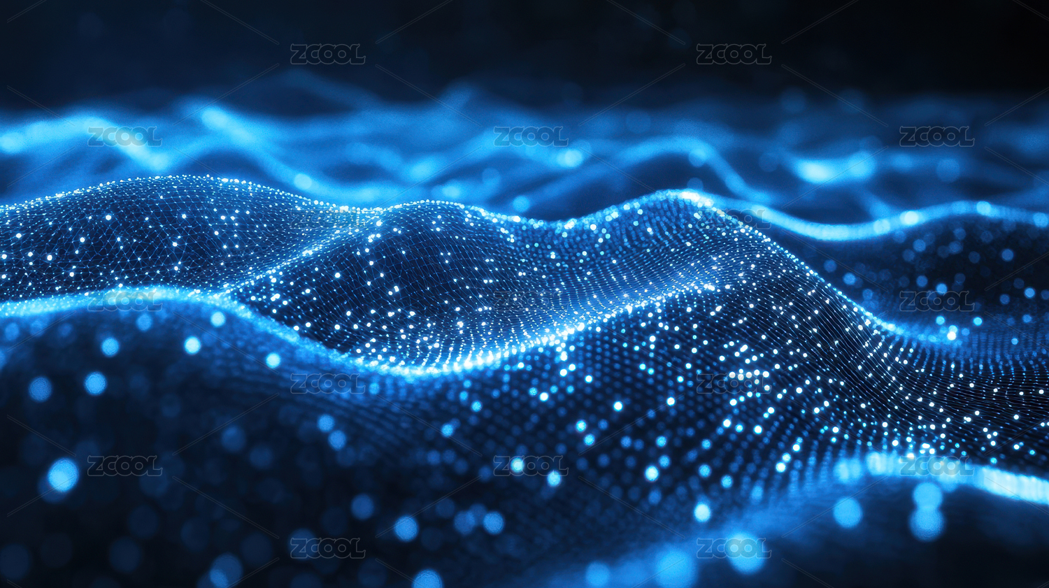蓝色不规则起伏的发光粒子背景素材
