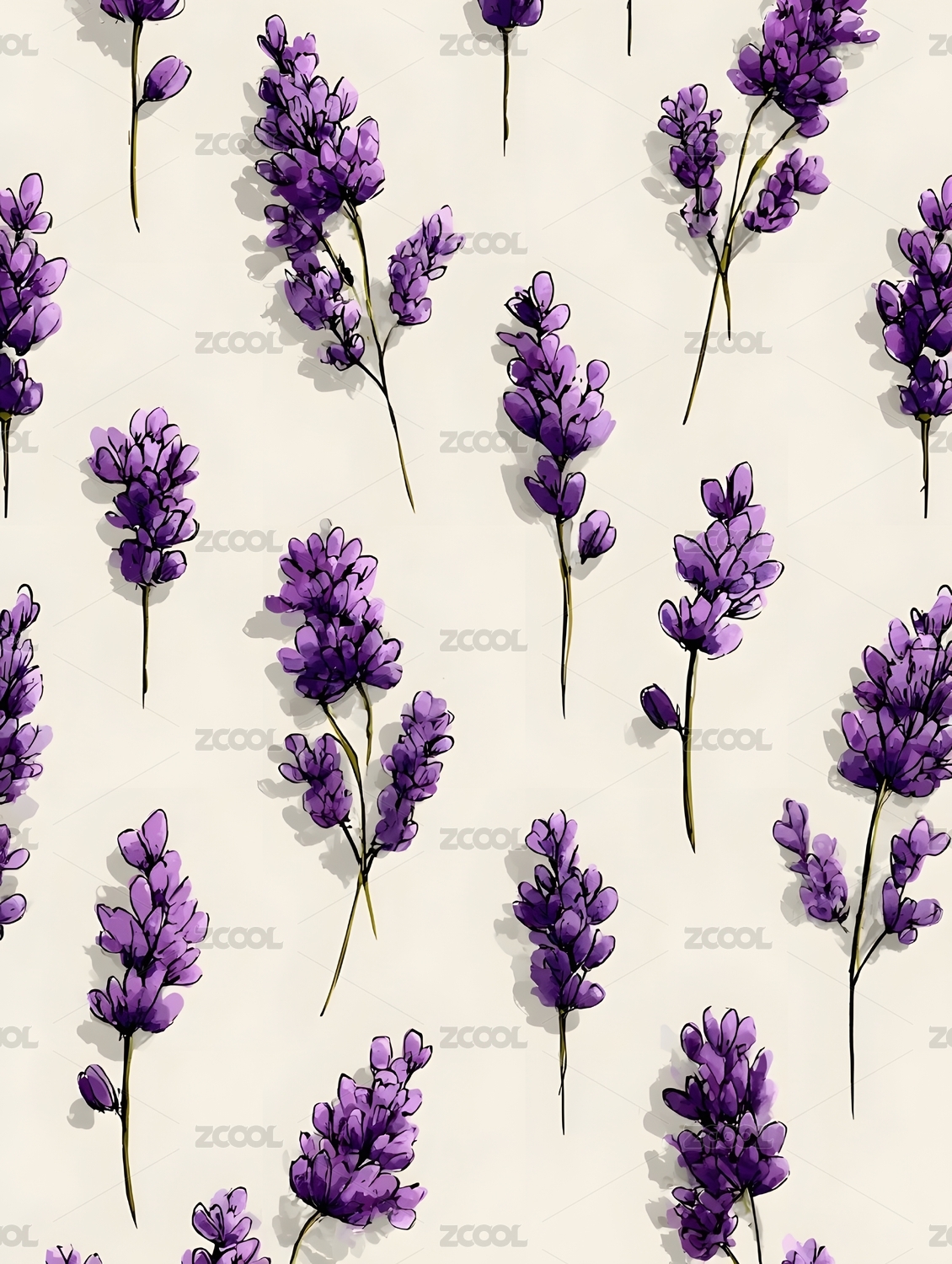 紫色雅致薰衣草植物水彩无缝图案纹理