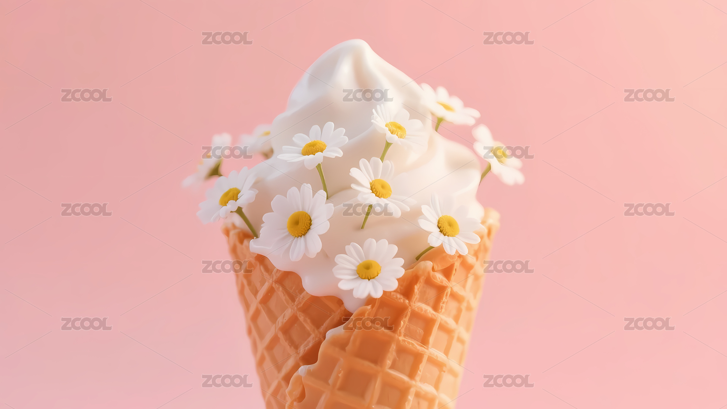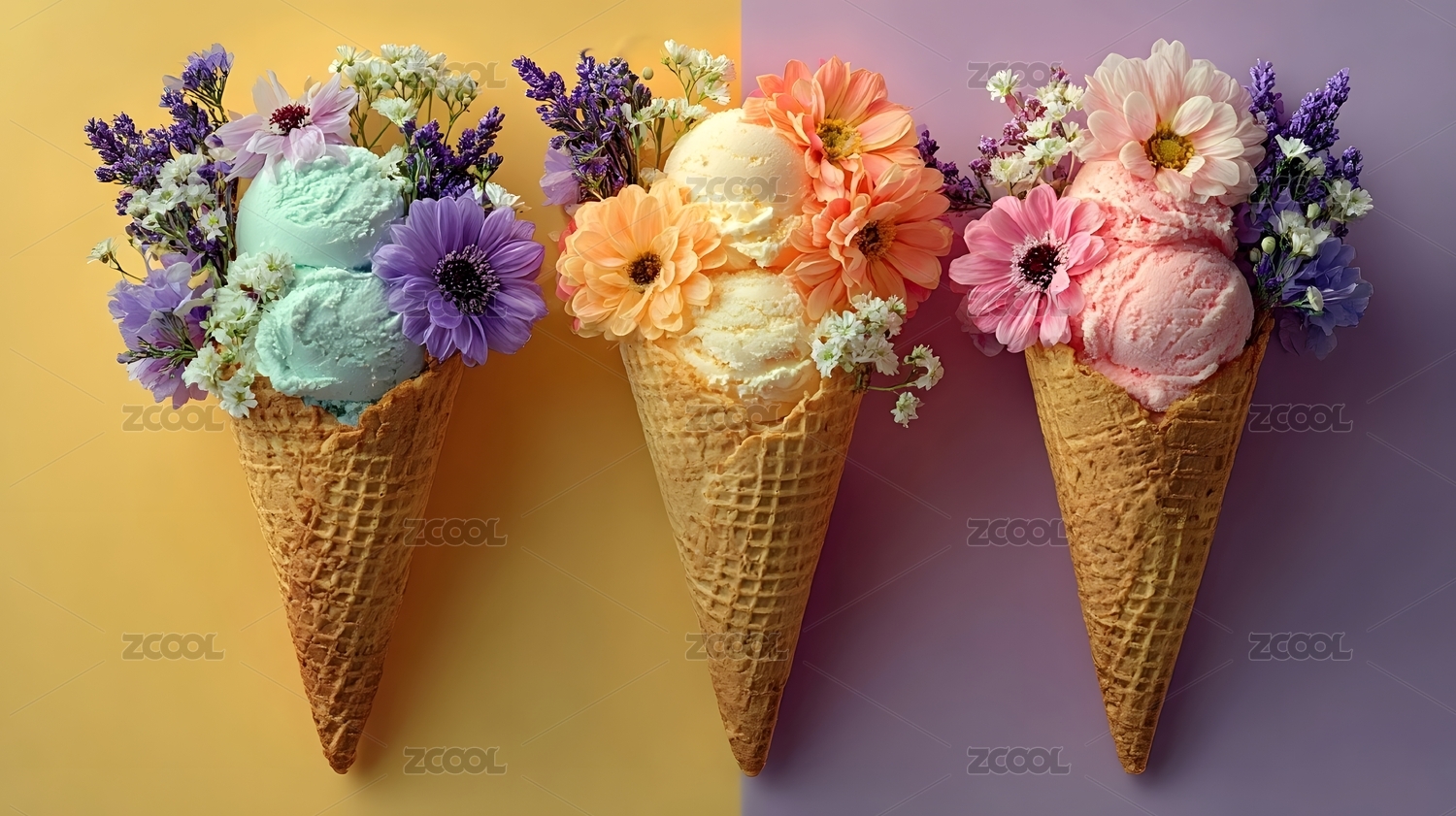 黄色,背景,绿色,花,冰淇淋,甜筒,花瓣,花枝,冰激凌,花朵
