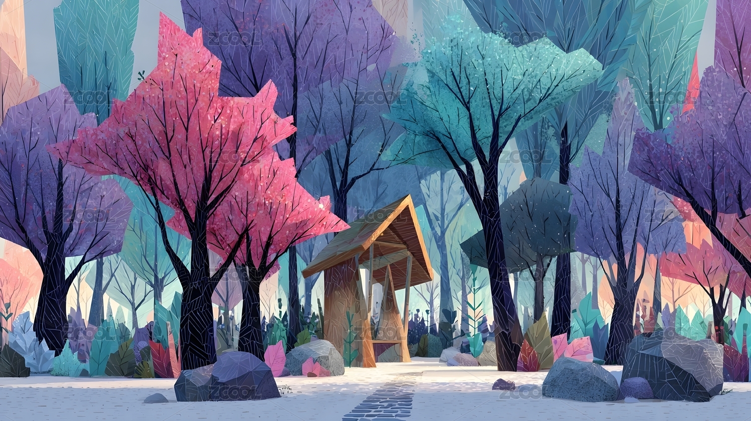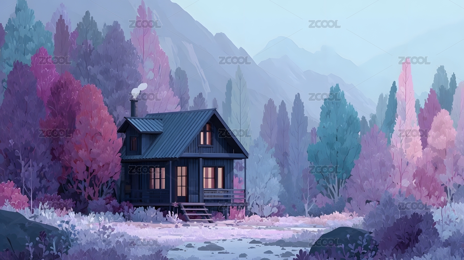 植物,紫色,艺术,绿色,设计,树木,自然,梦幻,风景,房屋