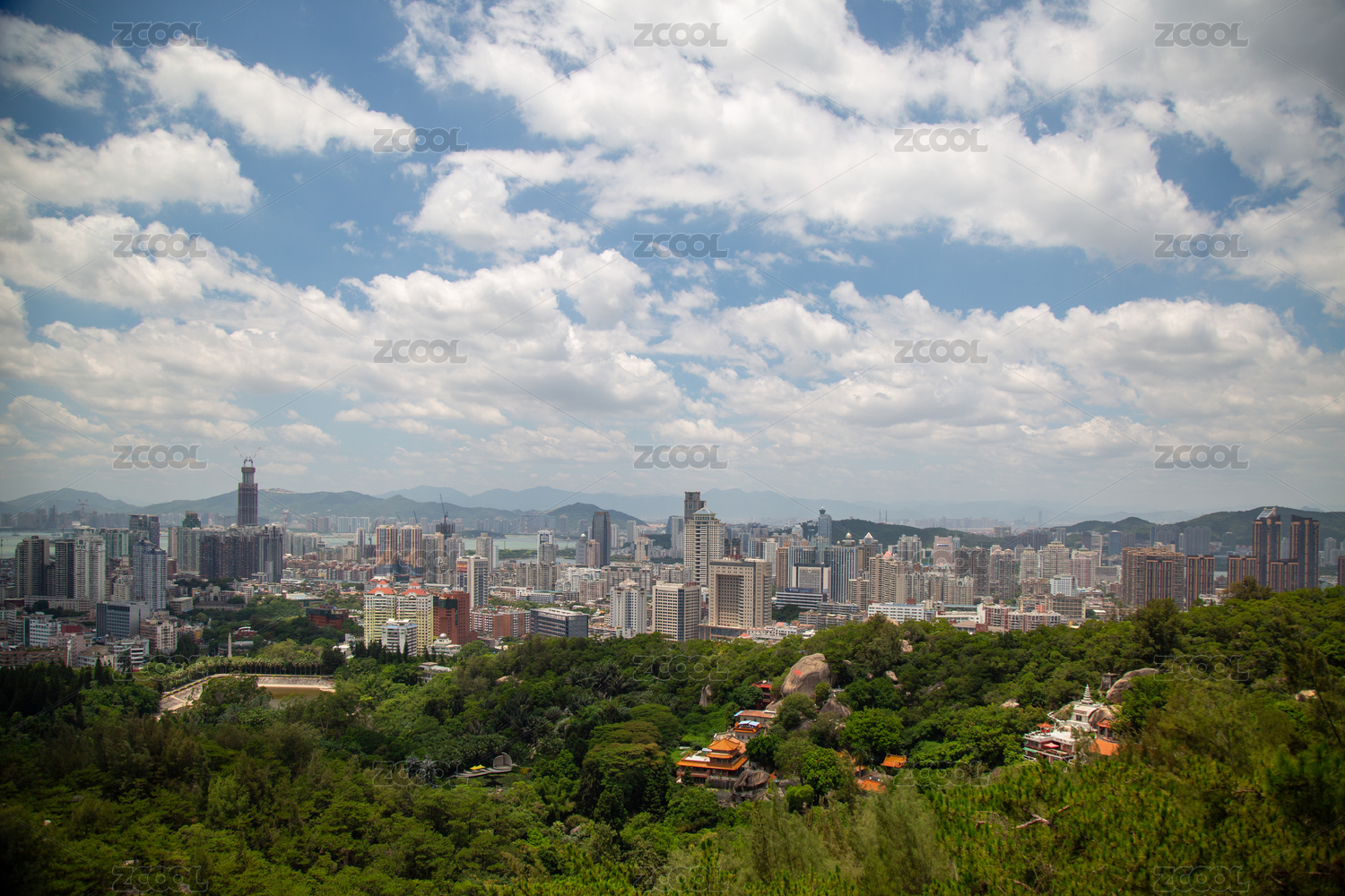 城市,高楼,建筑,绿树,山丘,蓝天,白云,远景,现代,都市