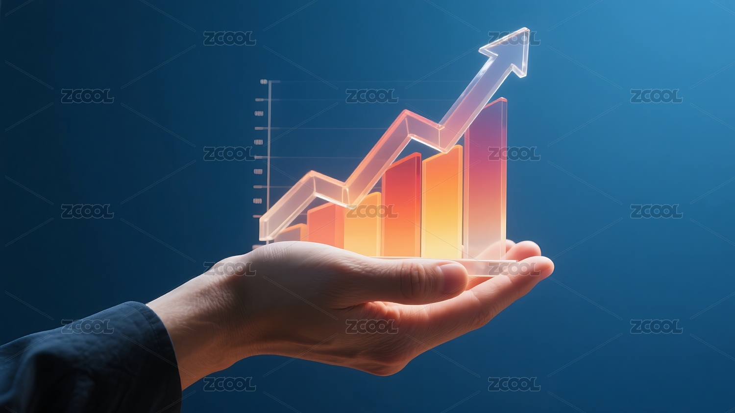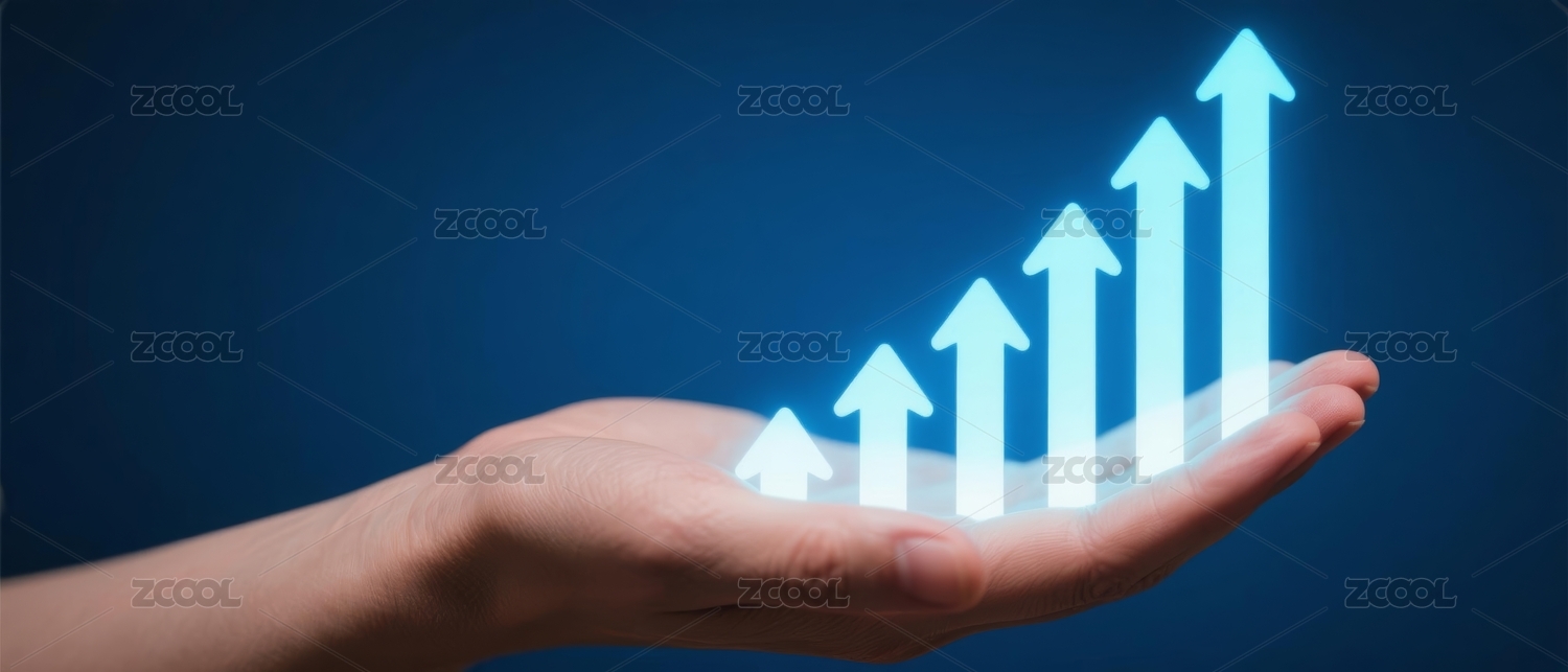 蓝色渐变玻璃质感金融柱状图增长箭头背景