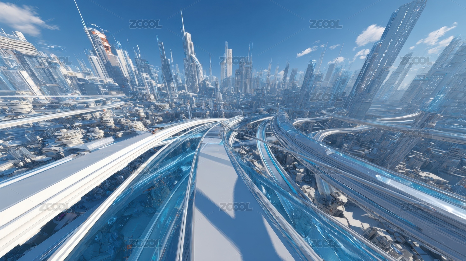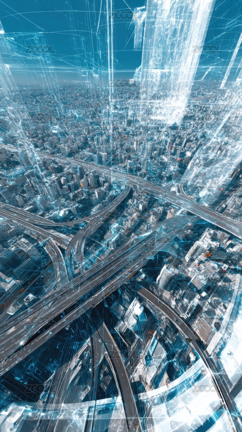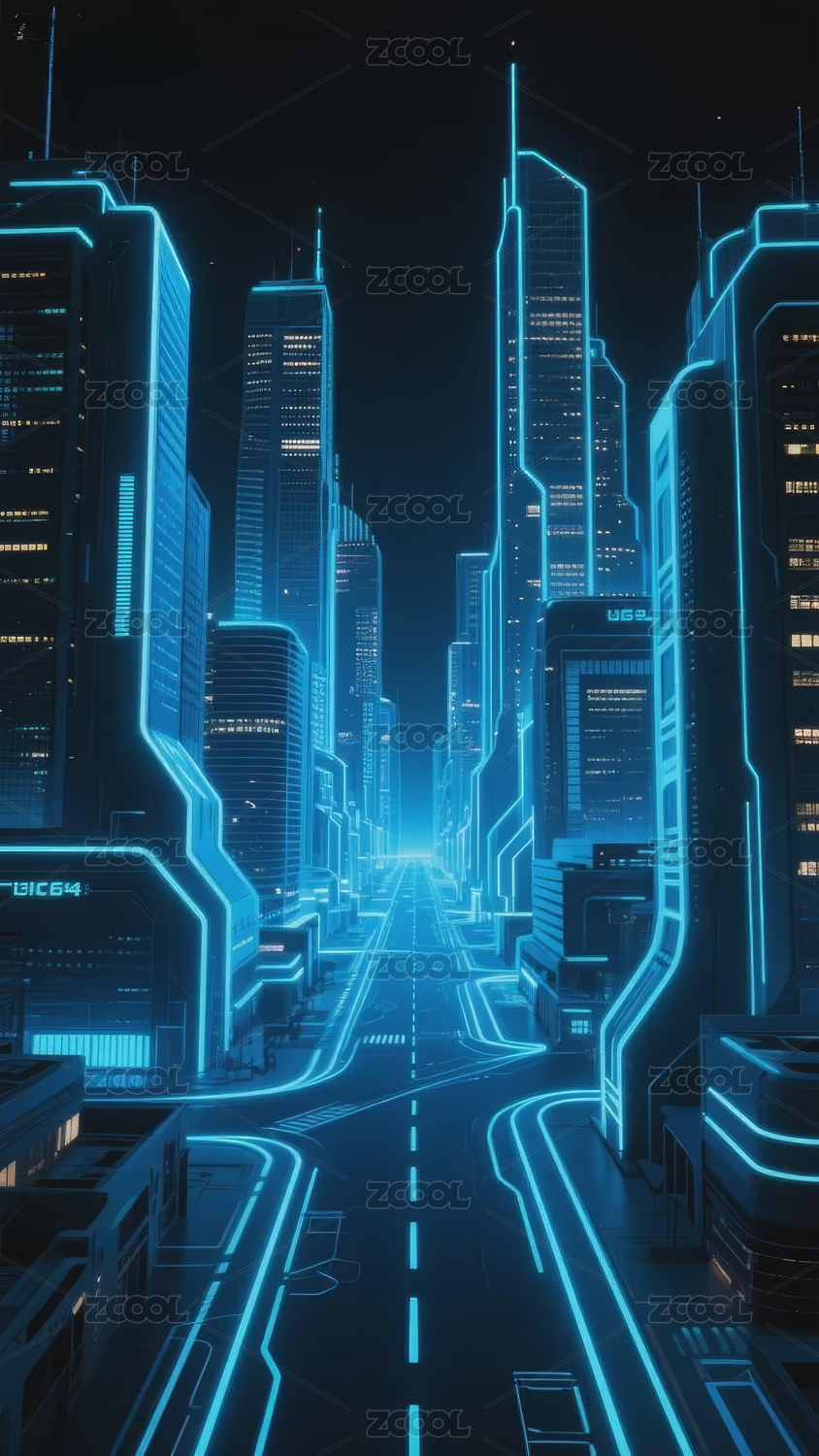 夜晚氛围,现代都市,高楼大厦,未来城市,光轨交错,夜景效果,科技感强,建筑密集,道路蜿蜒,光影流动