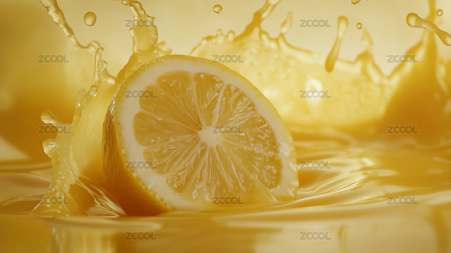 柠檬切片与果汁飞溅的瞬间
