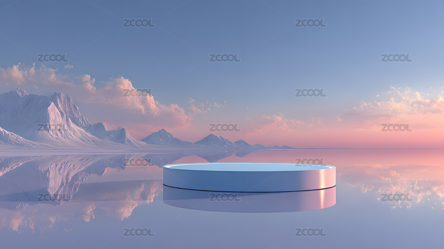沙漠夕阳与水面圆台