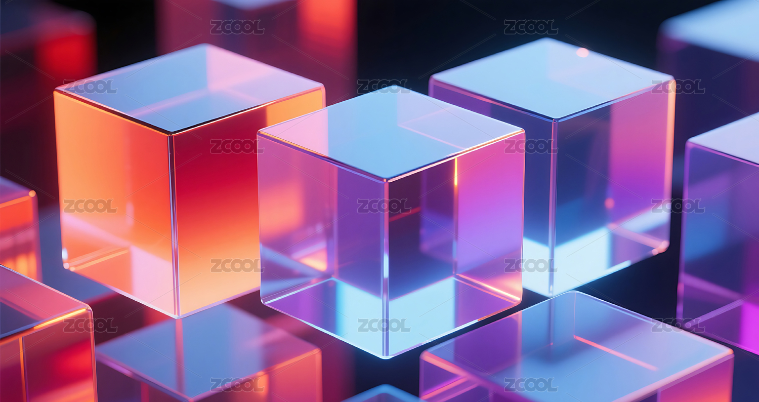 透明蓝色立方体的科技感设计
