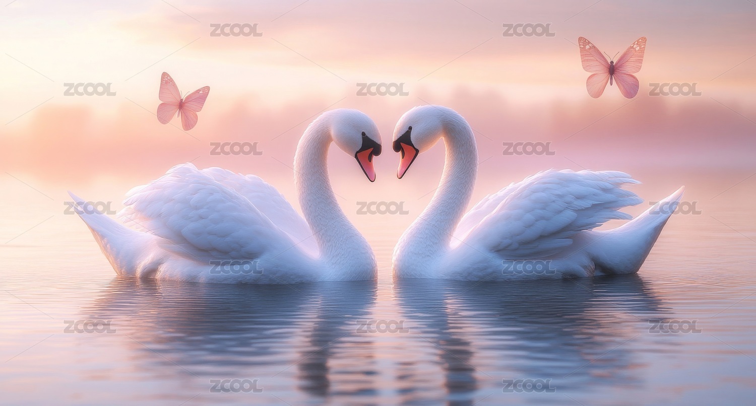 爱意融融天鹅湖畔蝶舞粉色浪漫