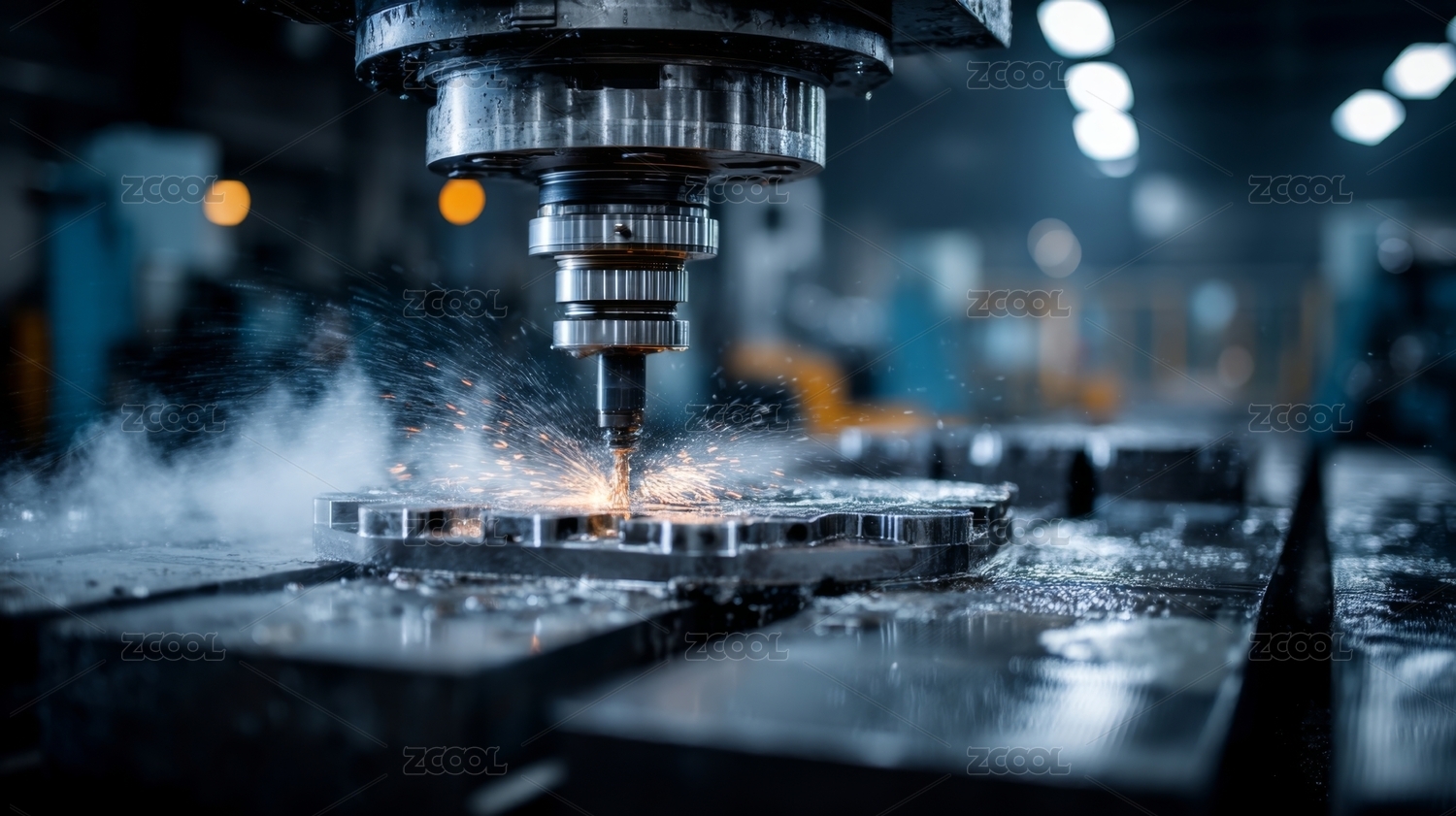 蓝色,简约,细节,光影,现代,氛围,机床,金属,钻孔,火花
