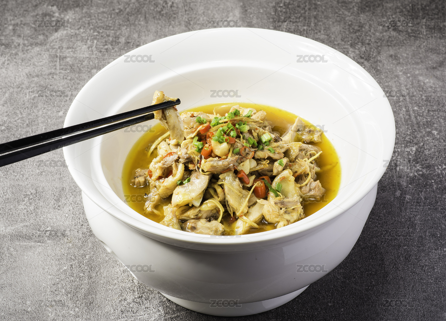 白色瓷汤盆装的猪肚土鸡枸杞汤