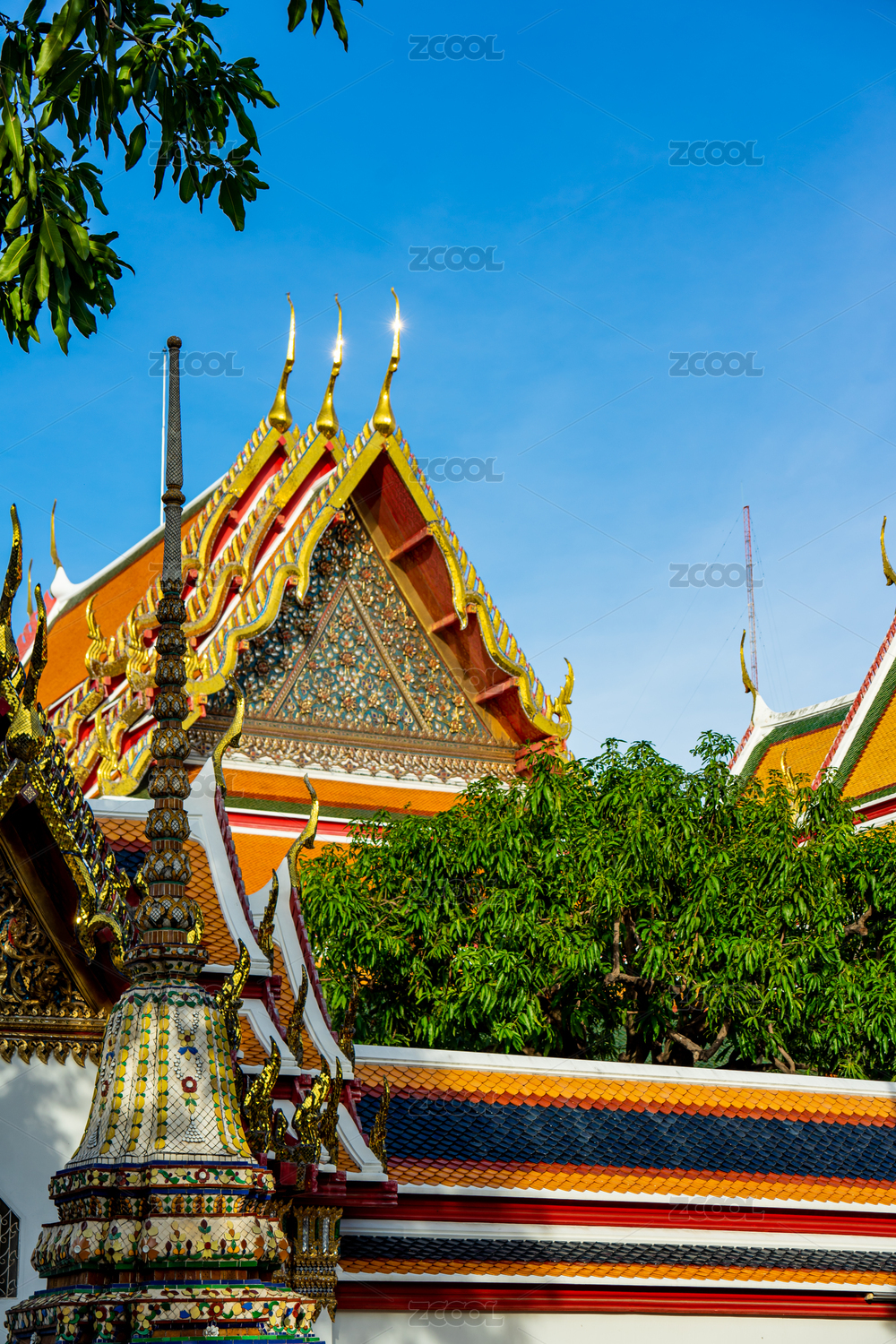 东南亚泰国曼谷卧佛寺屋顶特写局部