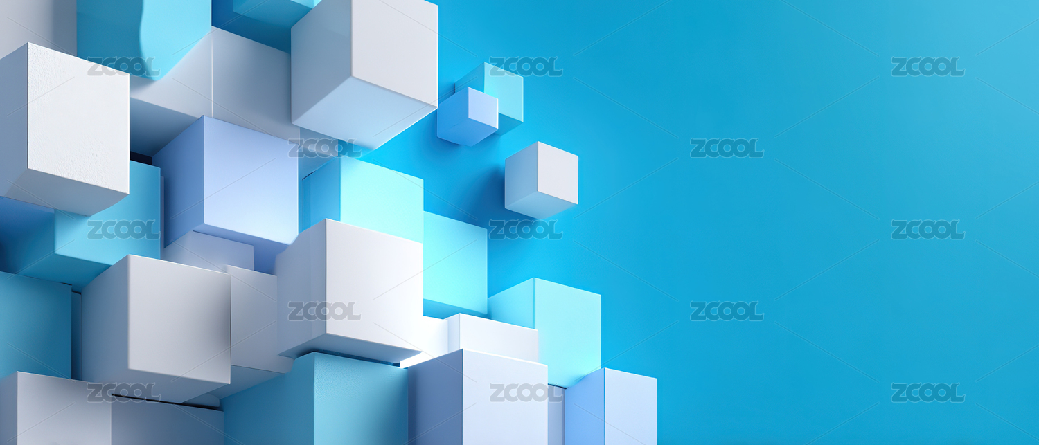 蓝白色立体方块抽象背景