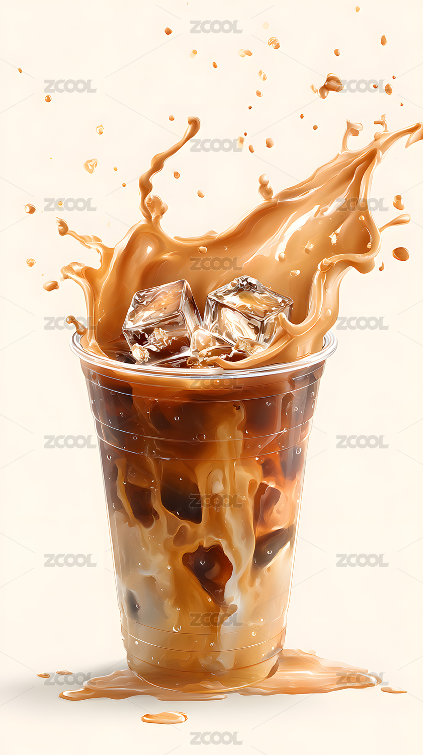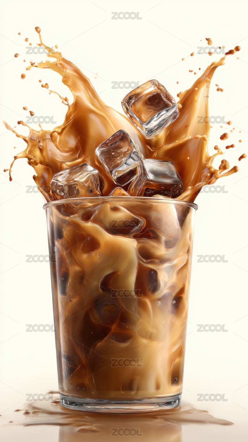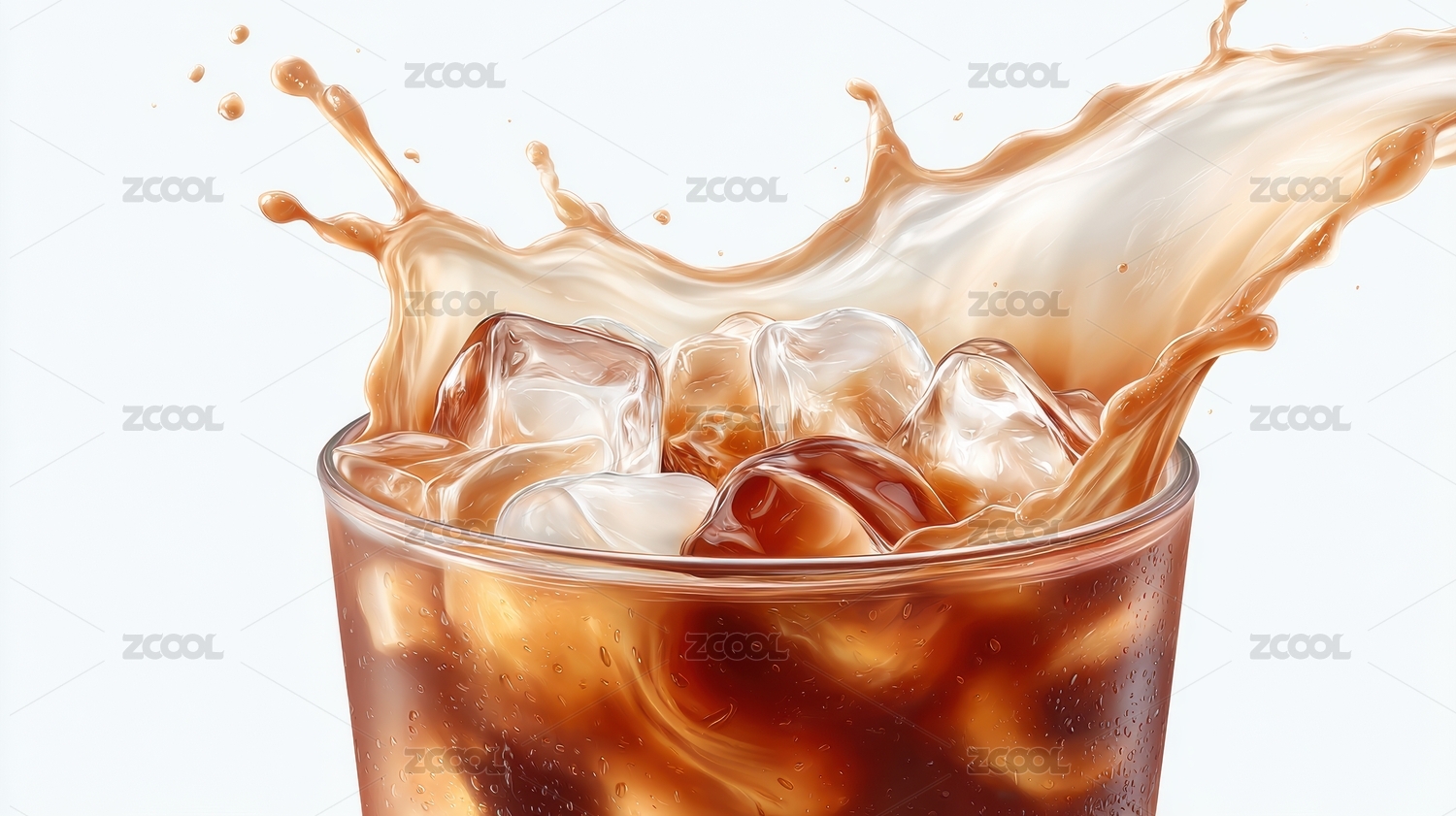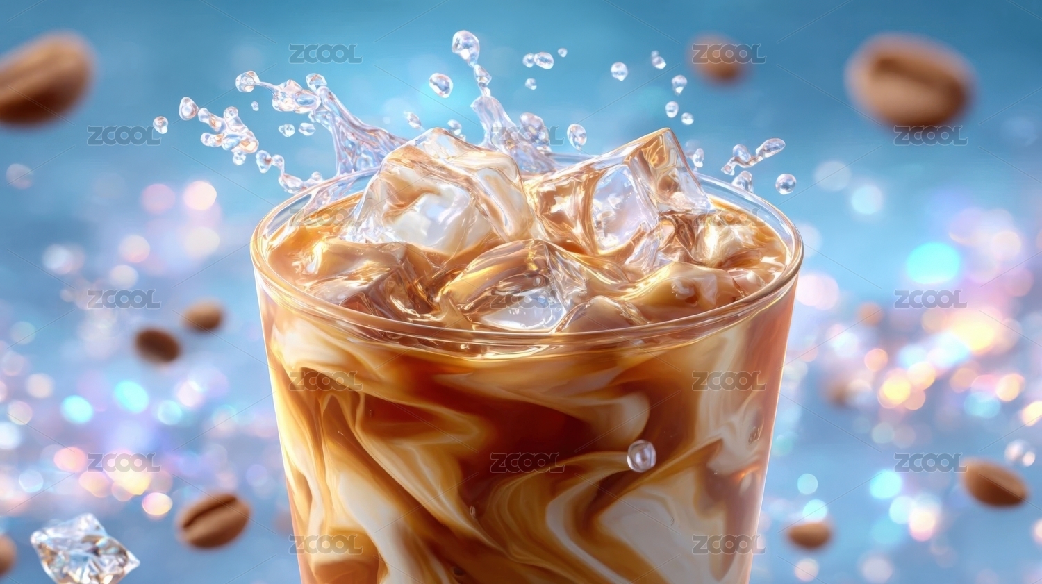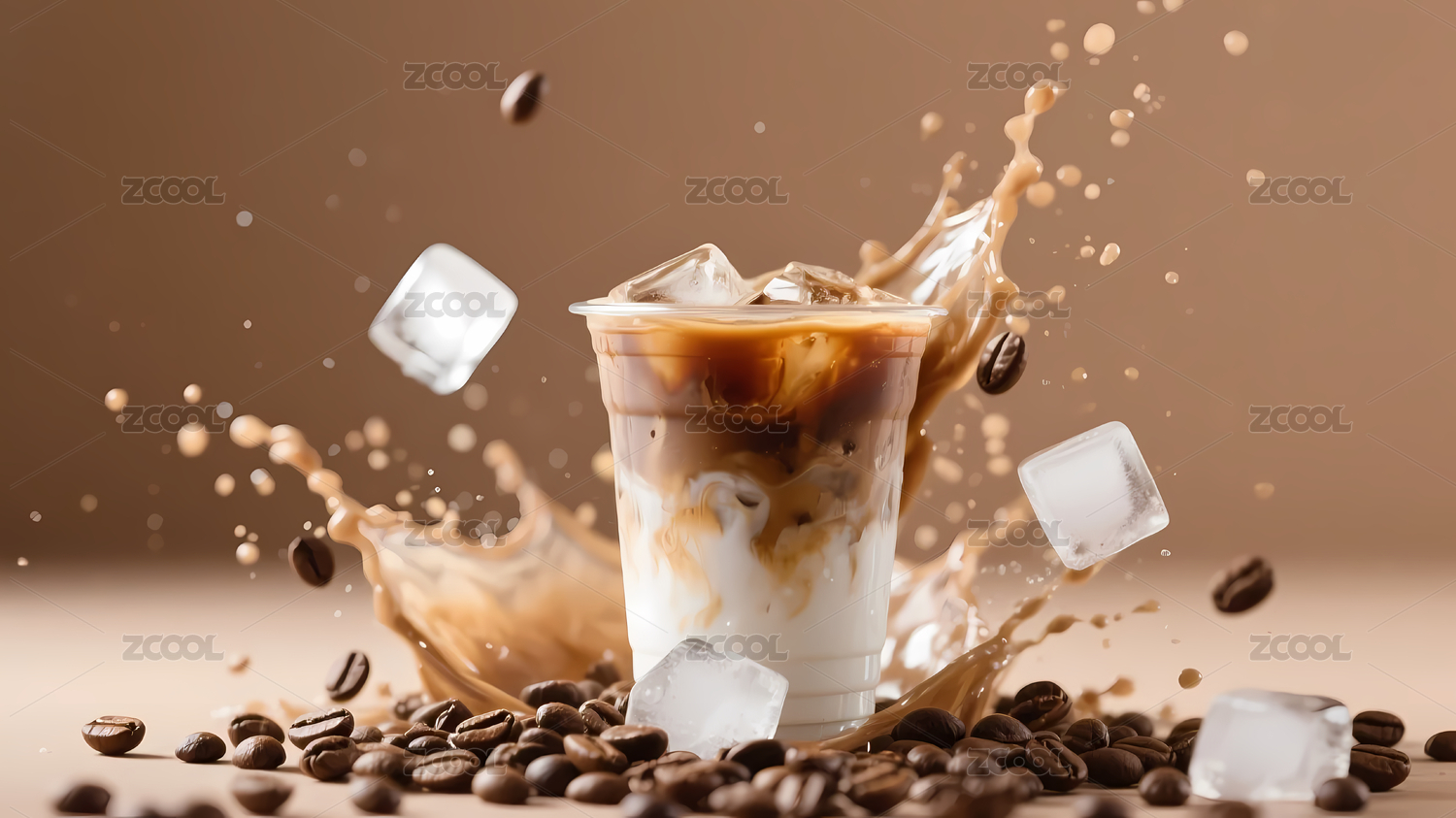咖啡,冰块,玻璃杯,飞溅,液体,咖啡豆,冷饮,清凉,提神,享受