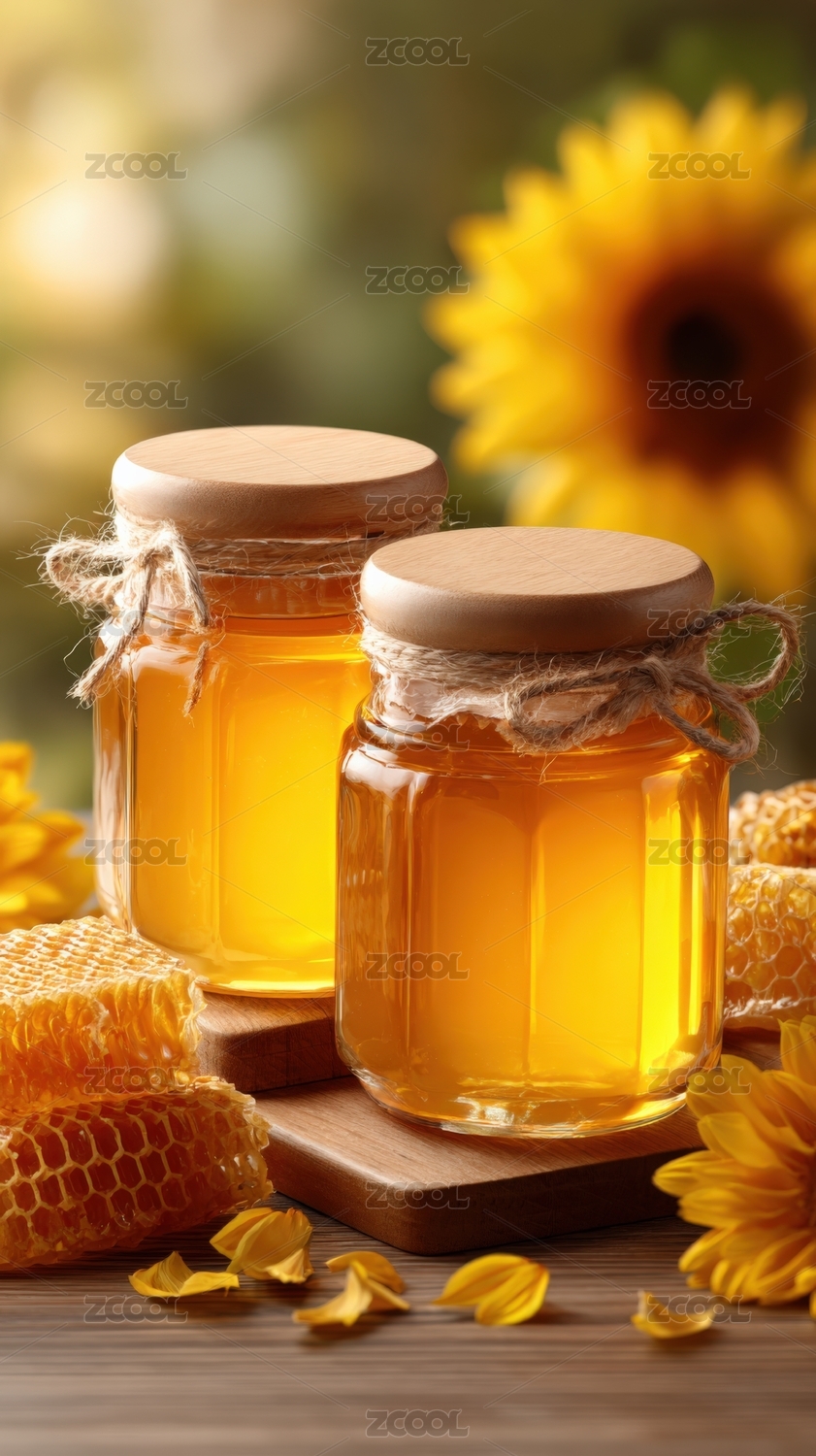 蜂蜜玻璃瓶与向日葵