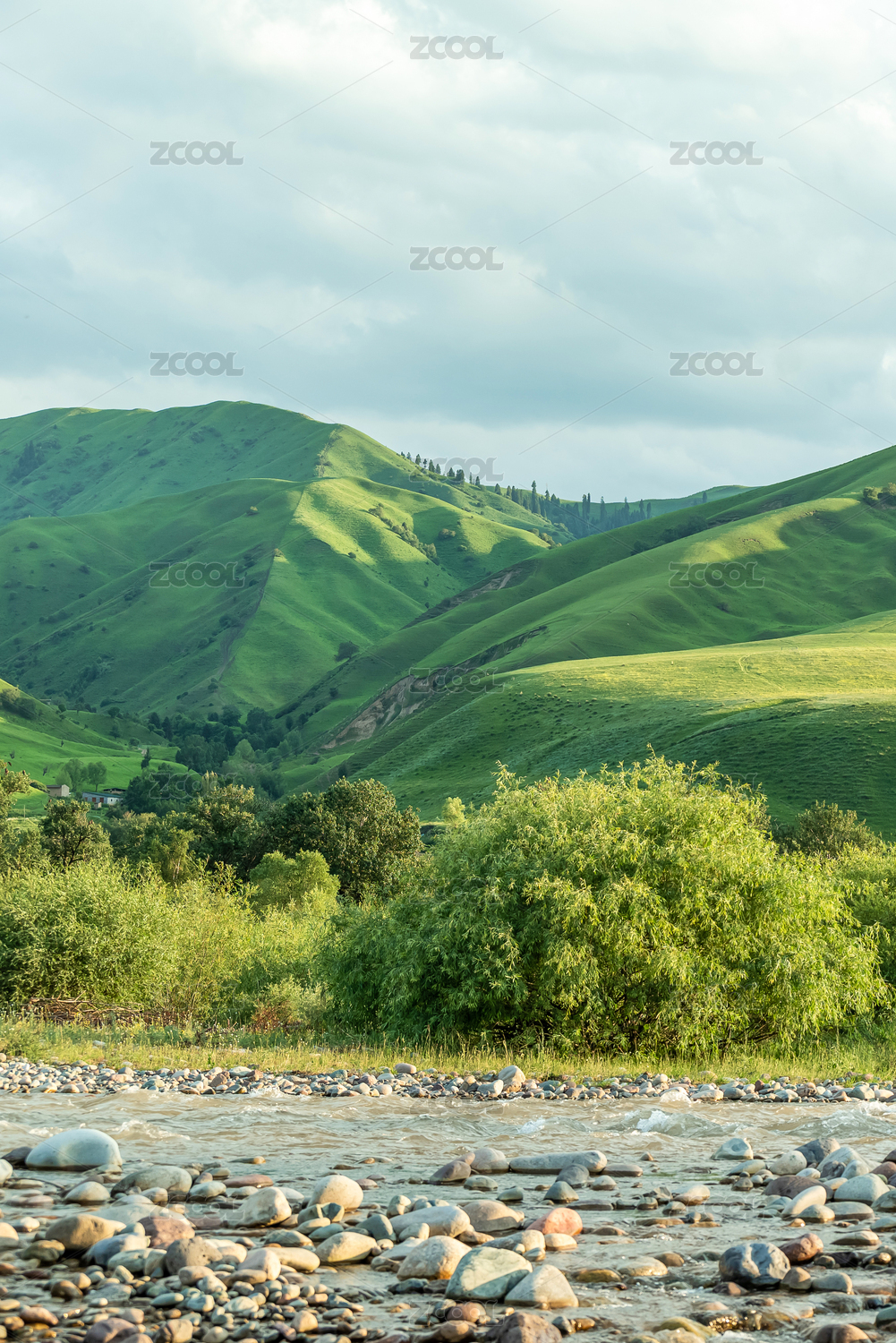 傍晚时分,中国新疆伊犁那拉提镇的黄昏景色