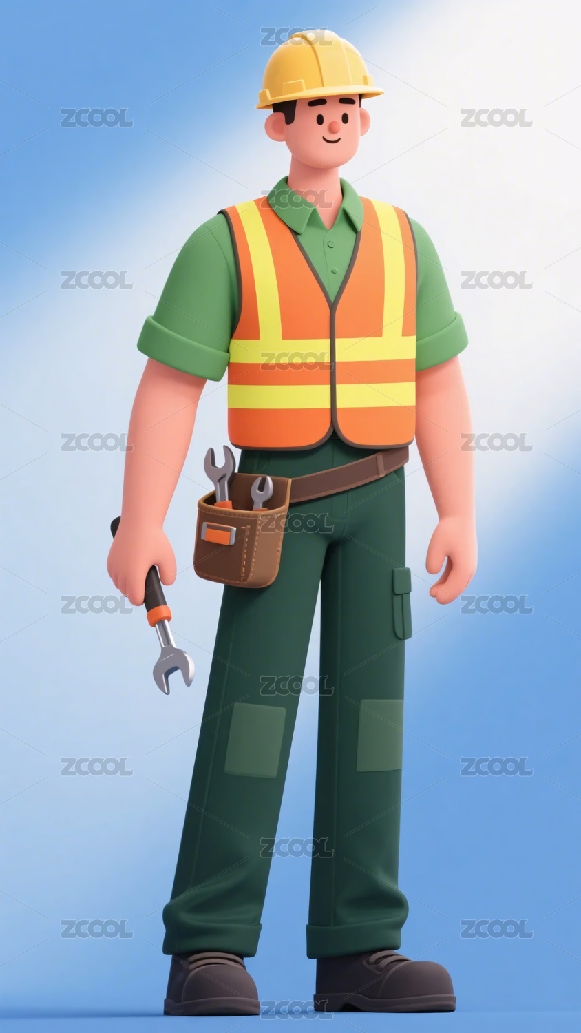 手持扳手的卡通工人形象