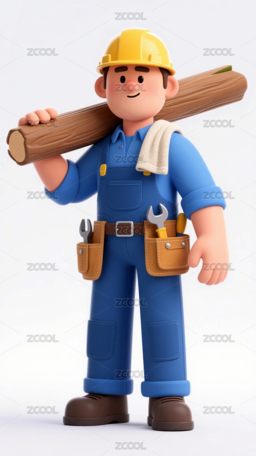 建筑工人3d卡通人物五一劳动节三维渲染