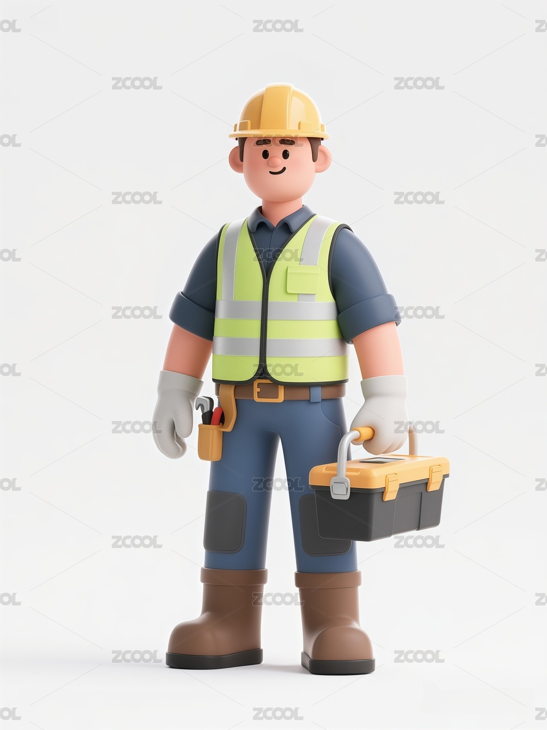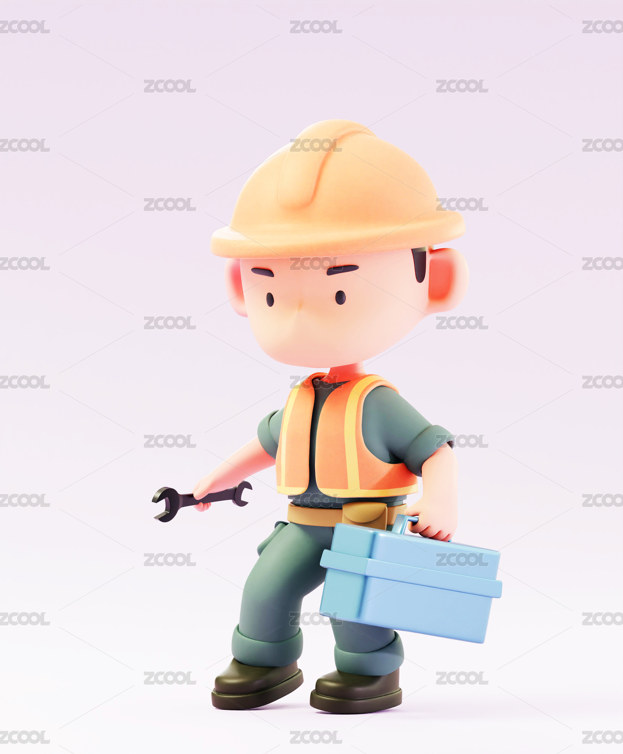3D渲染的公路维修维护工人卡通人物形象
