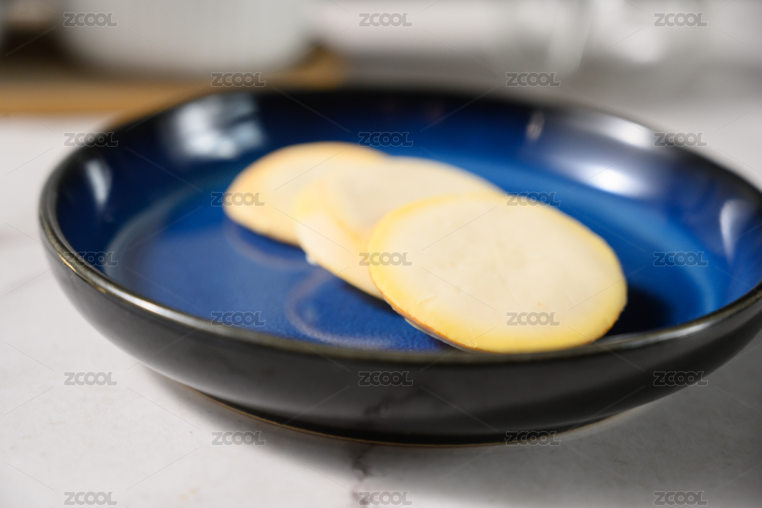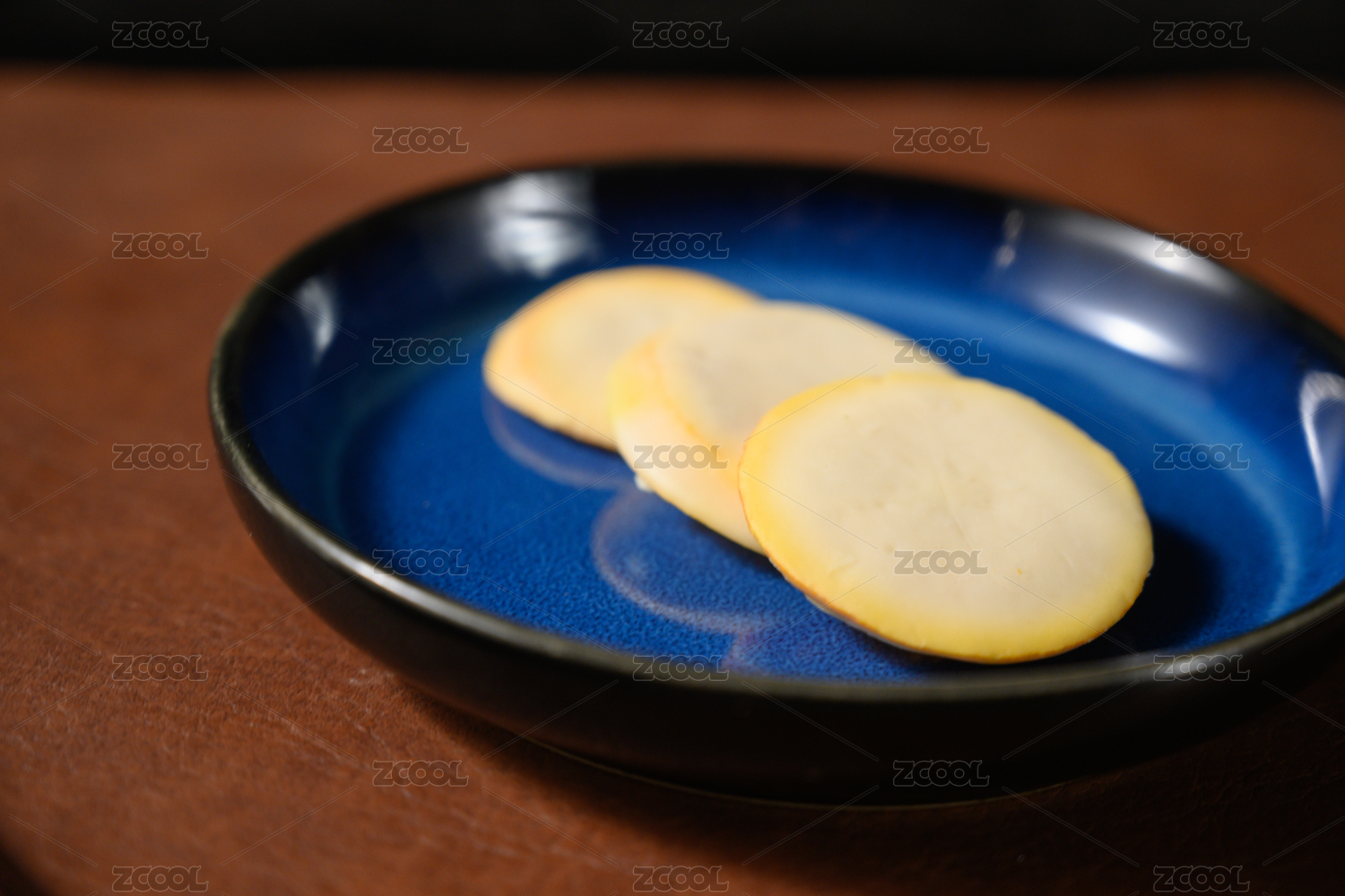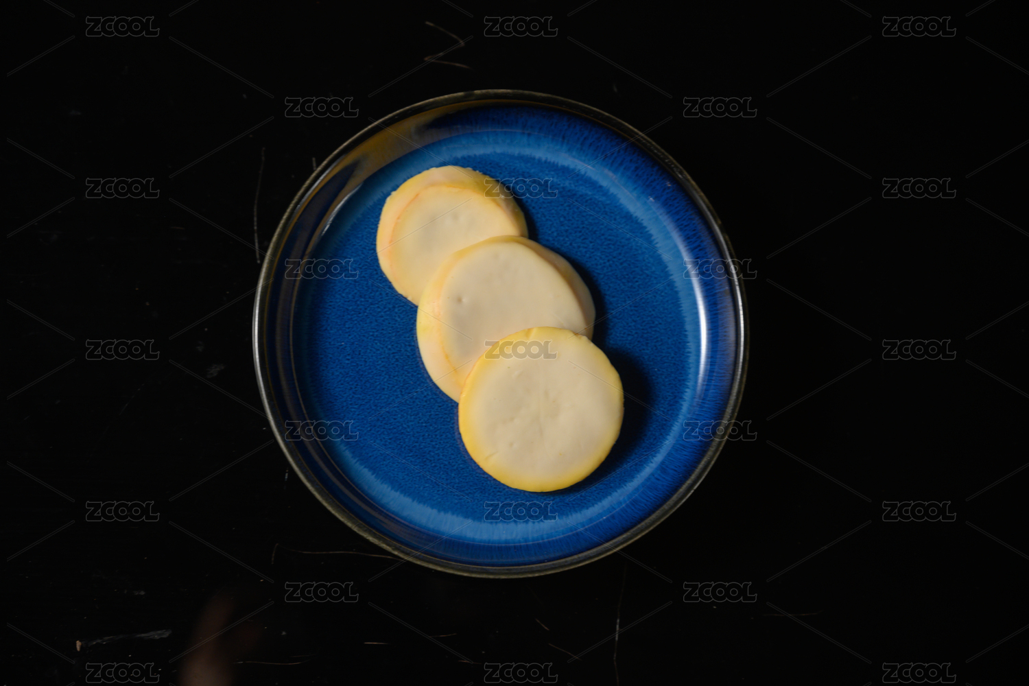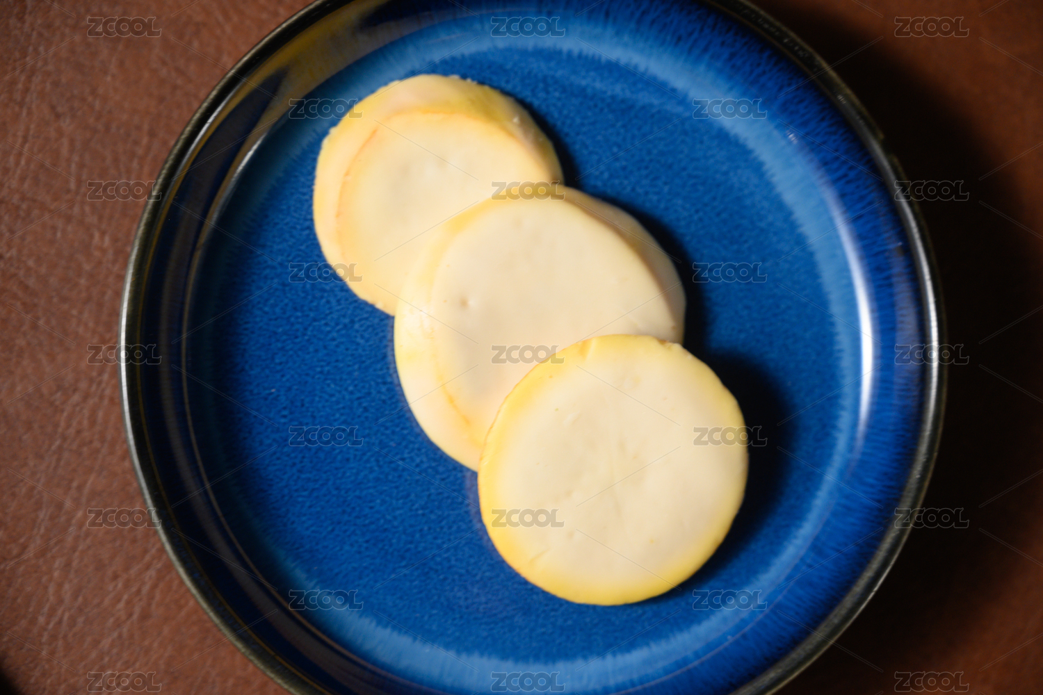 桌面上的盘子里的美味可口的白巧克力橙子片