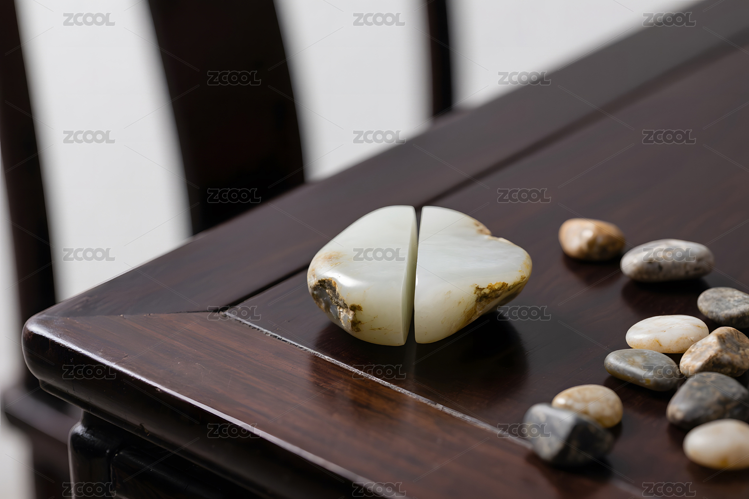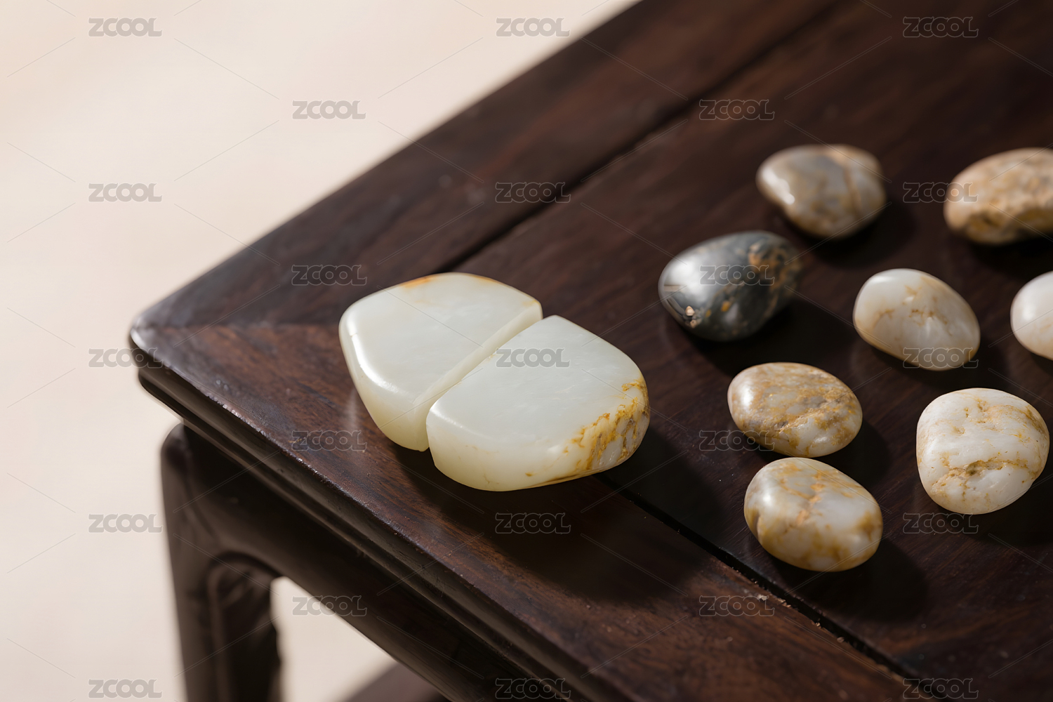 实木桌面上品相极佳的玉石