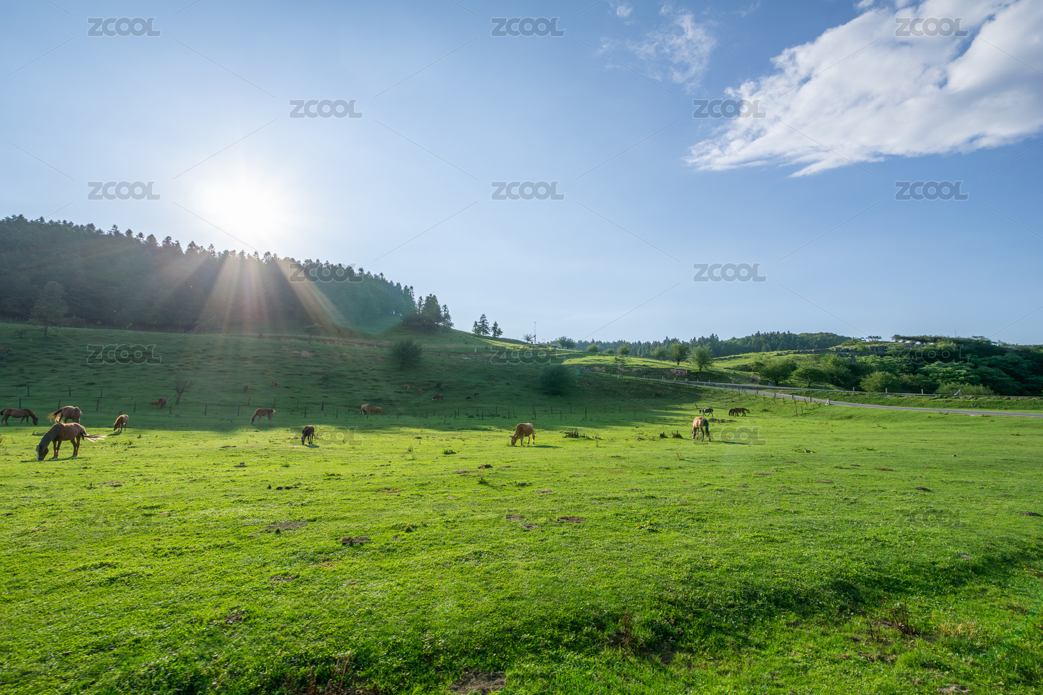 内蒙古赤峰乌兰布统草原景区蓝天白马群骏马