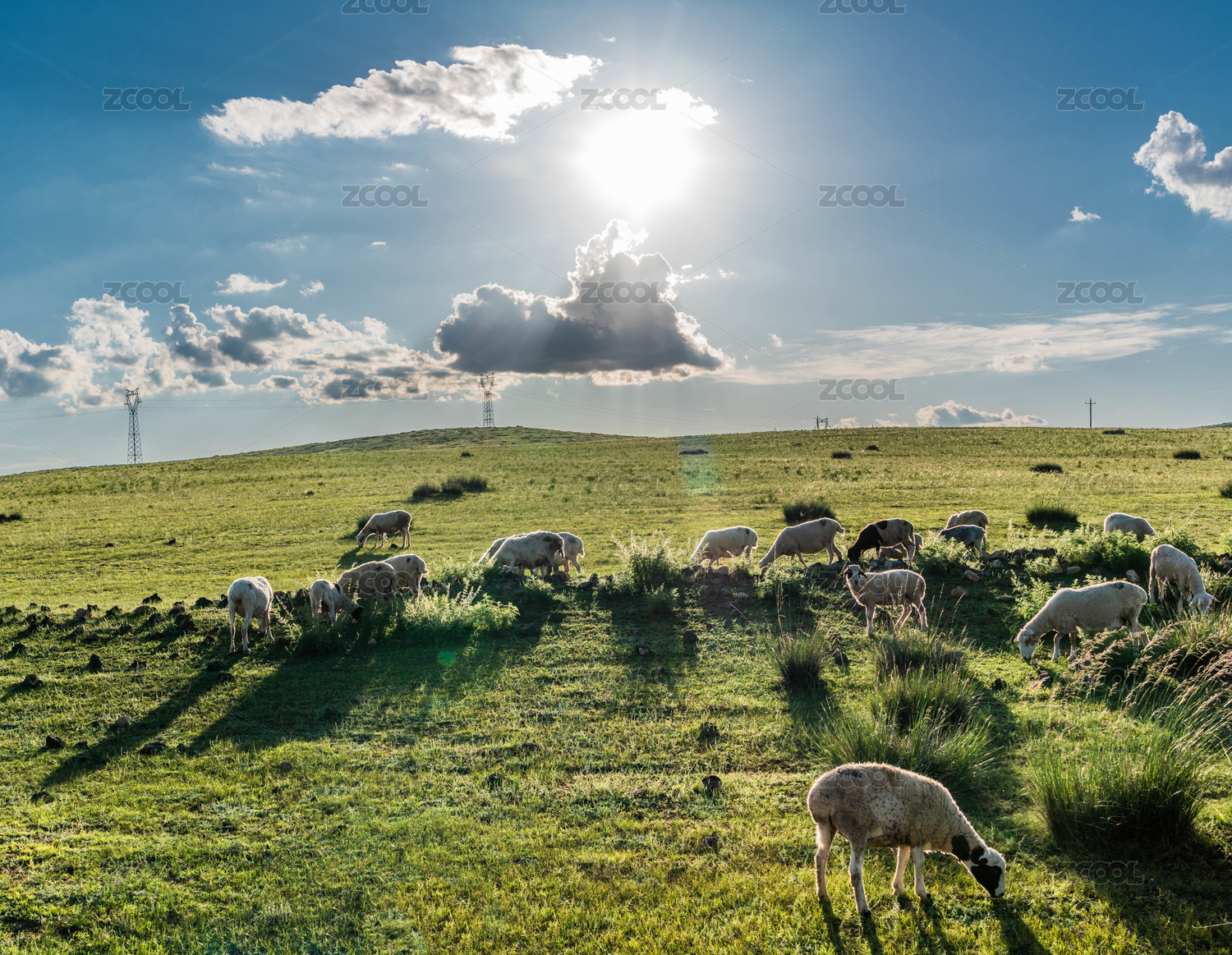 内蒙古赤峰乌兰布统草原景区蓝天白马群骏马