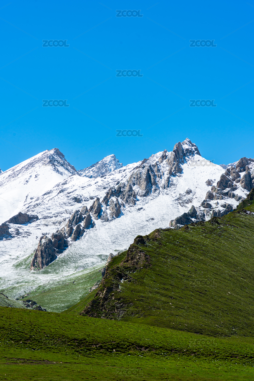 中国新疆那拉提雪莲谷雪山草地风光