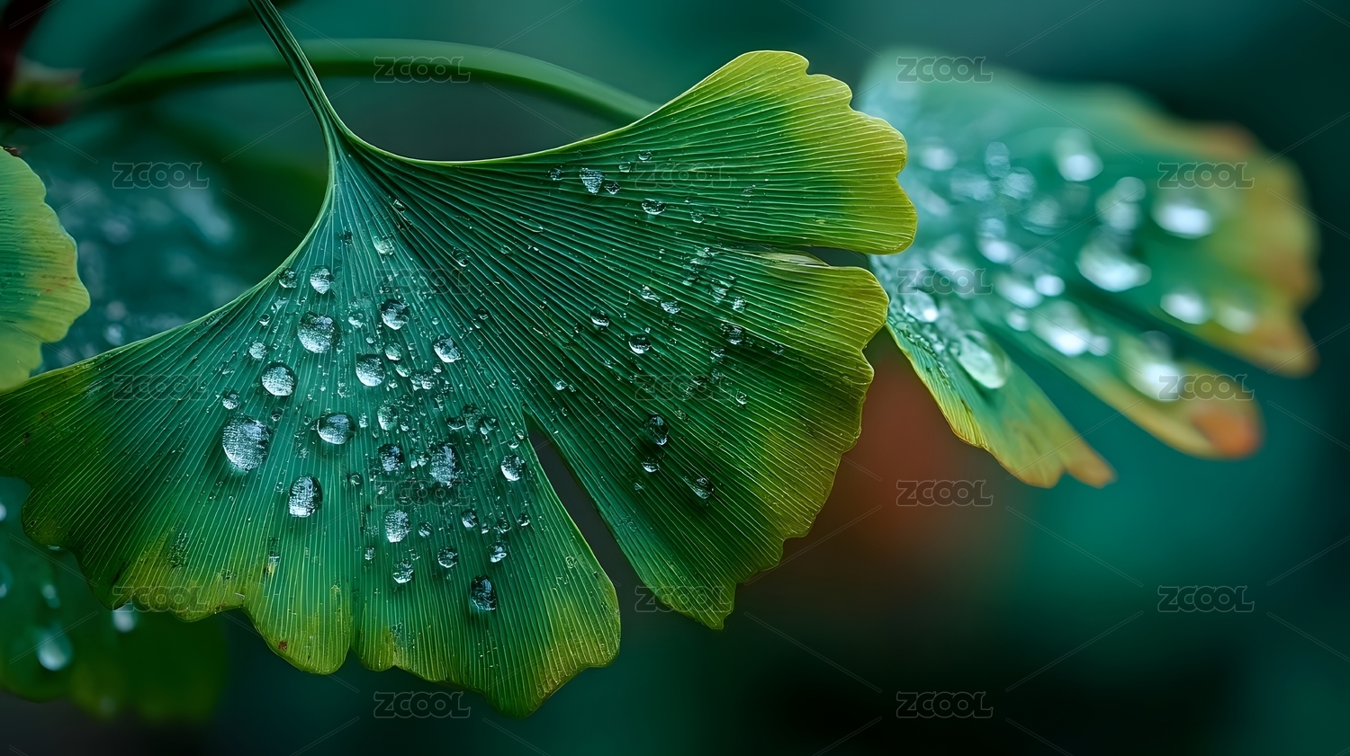 银杏叶,水珠,特写,下雨,植物,叶子,自然