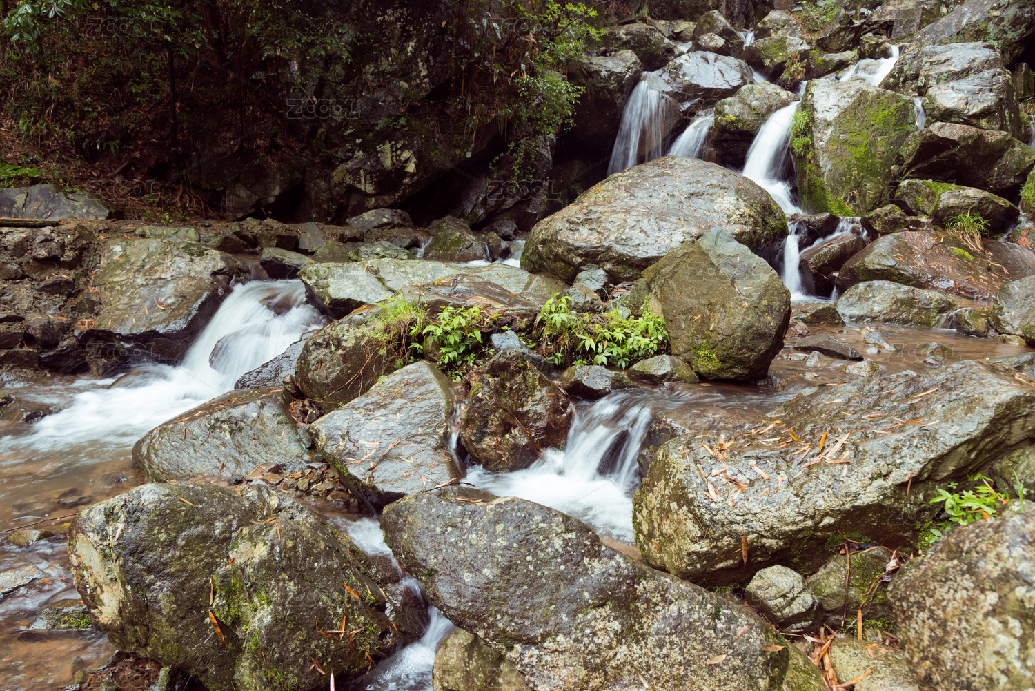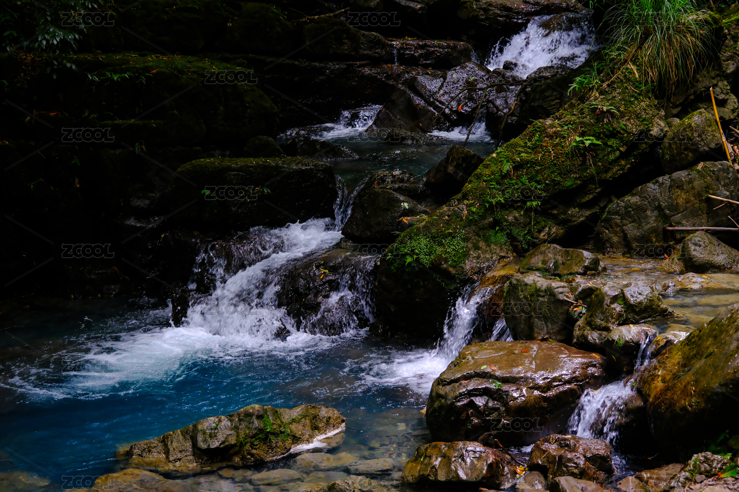 湖北,南漳县,翡翠峡,溪流,瀑布,石头,流水,绿植,植被,水流