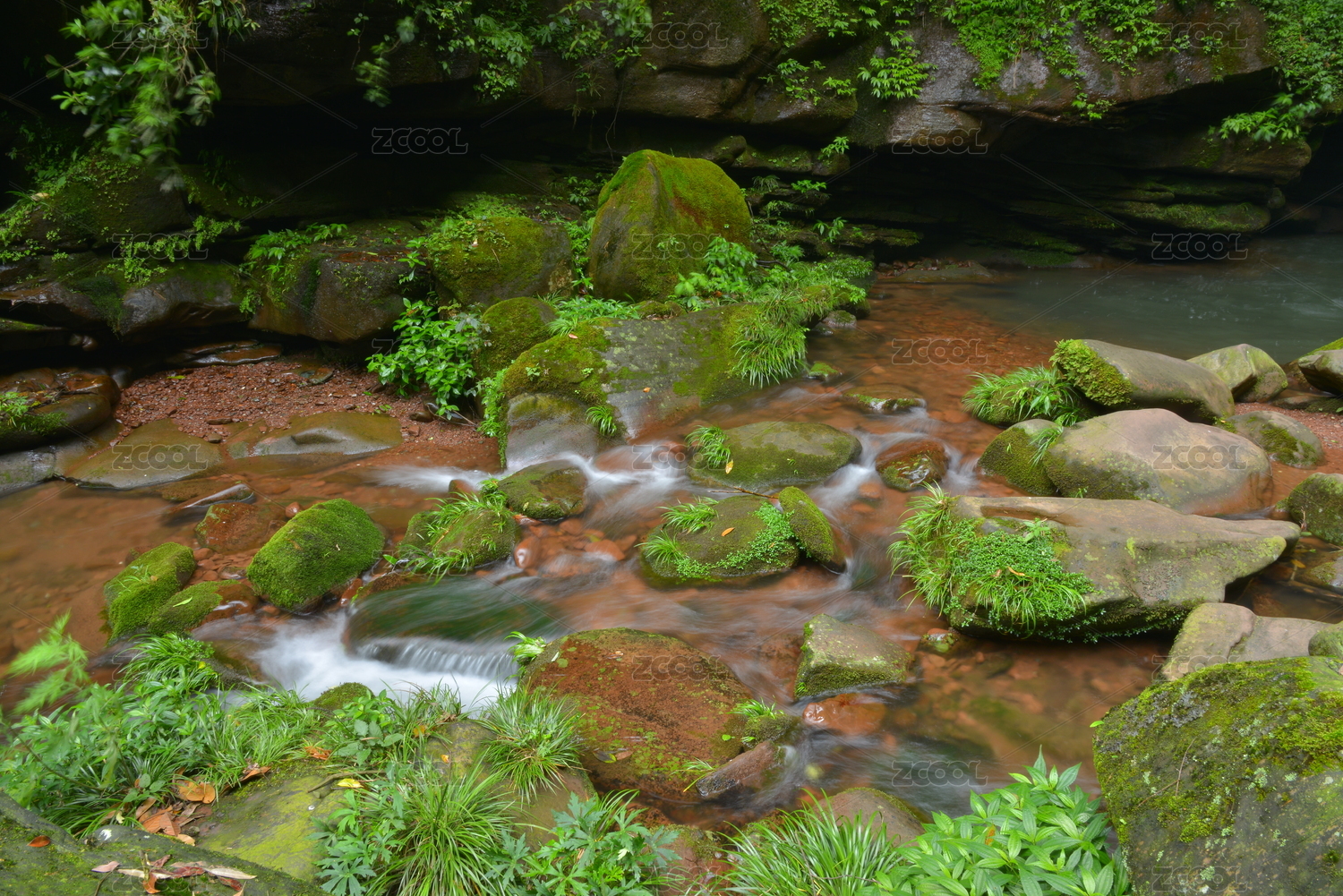 湖北,南漳县,翡翠峡,溪流,瀑布,石头,流水,绿植,植被,水流