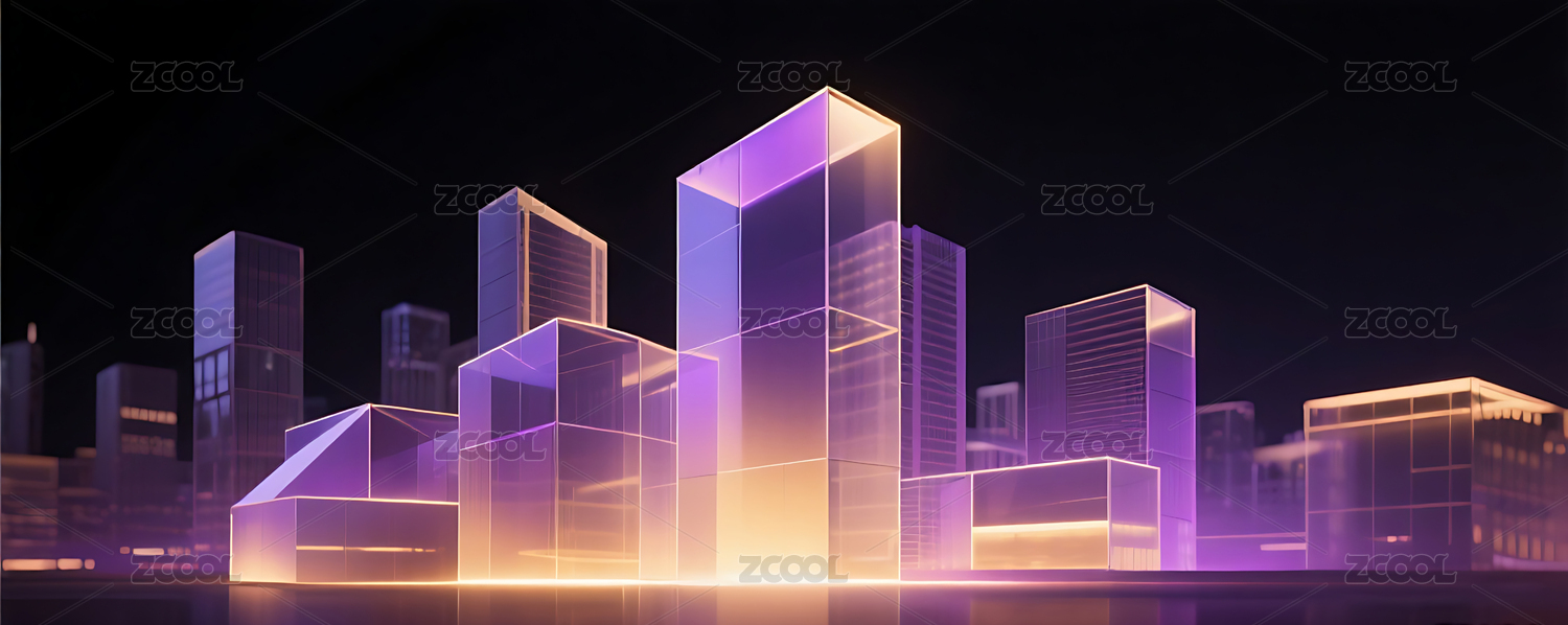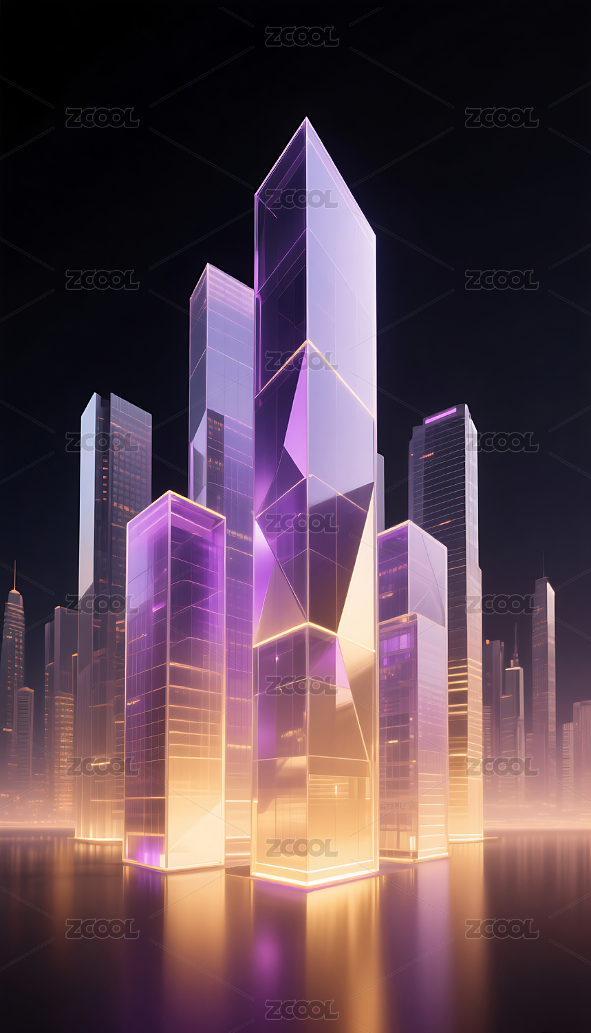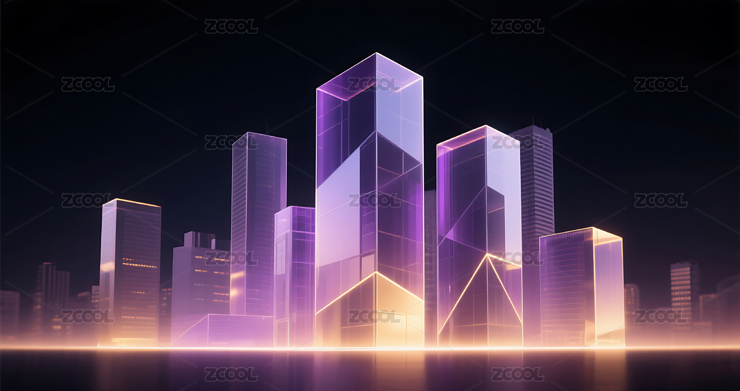 紫金色几何玻璃城市建筑黑色背景