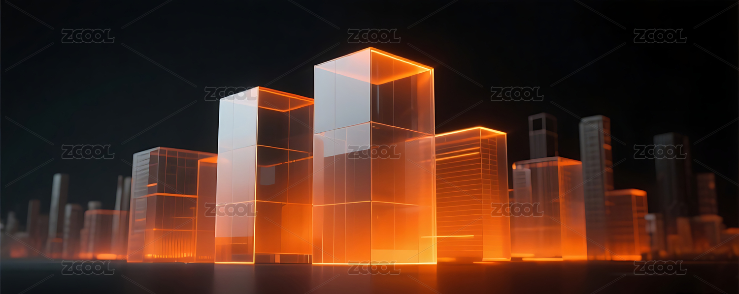 橙色几何玻璃城市建筑黑色背景