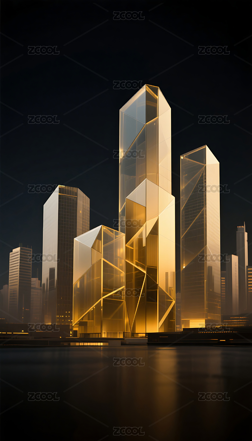 金色几何玻璃城市建筑黑色背景