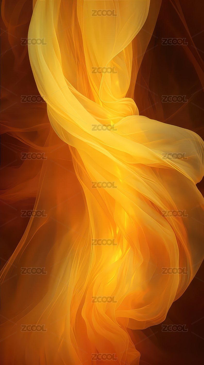 黄色薄纱在风中飘逸流动呈现抽象美感